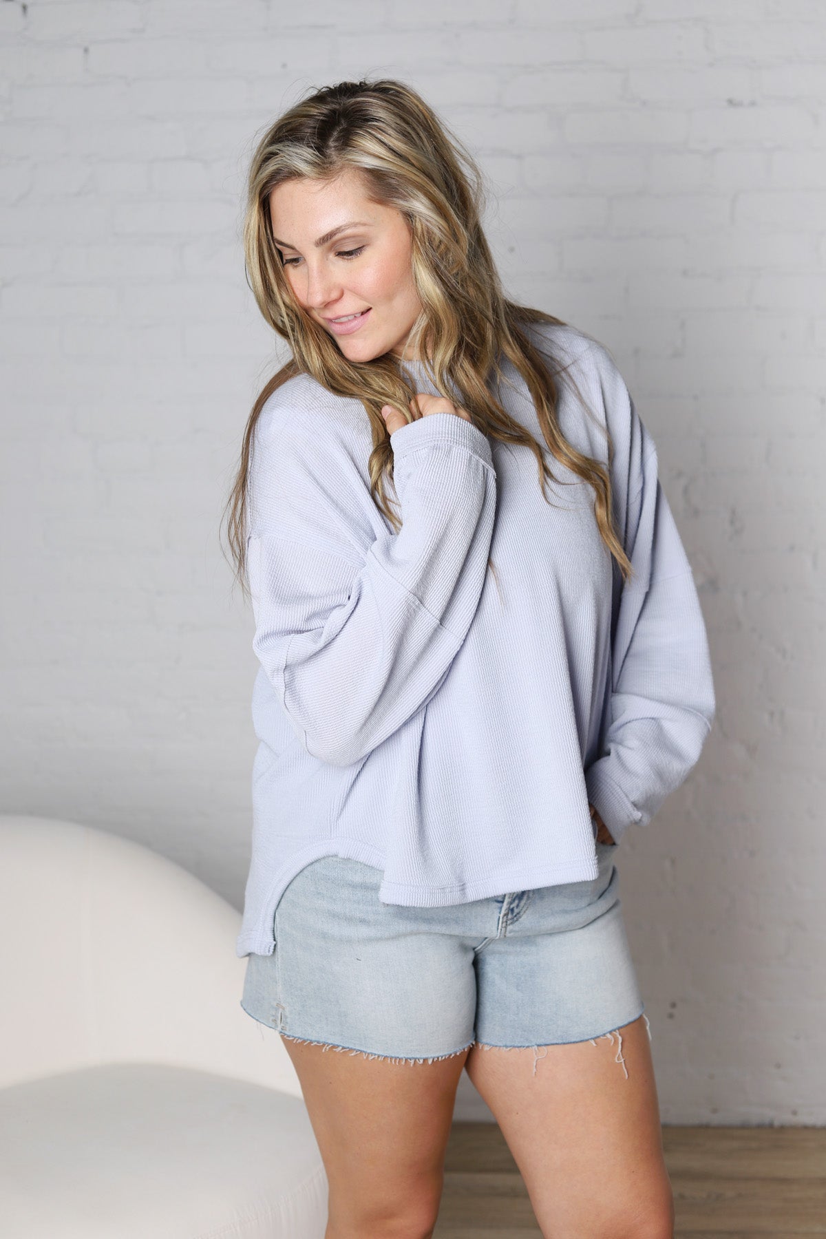 Faye Bamboo Dolman Cap Sleeve Top - Soft Periwinkle