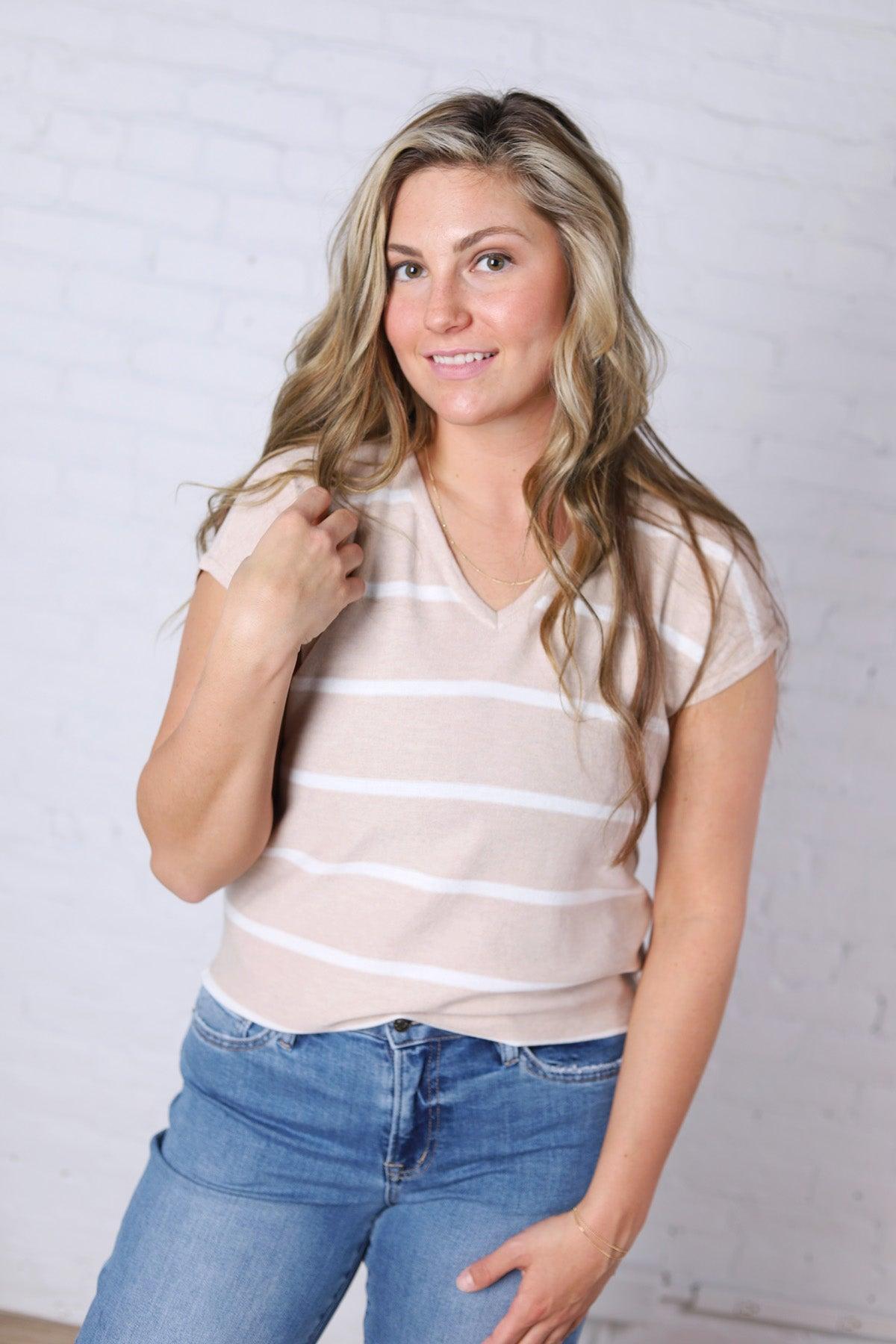 Alma Striped Everyday Sweater - Oatmeal – Gallery 512 Boutique
