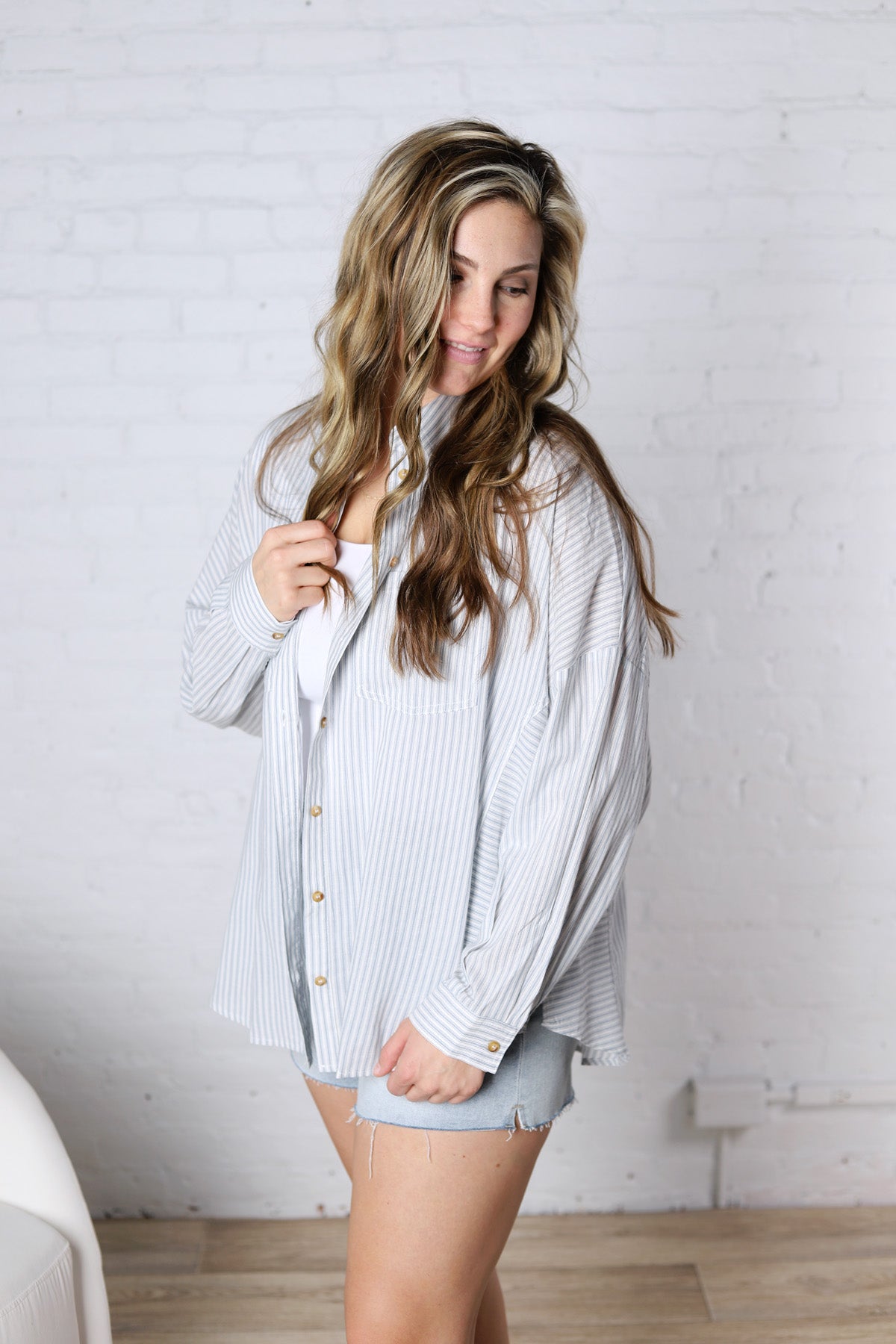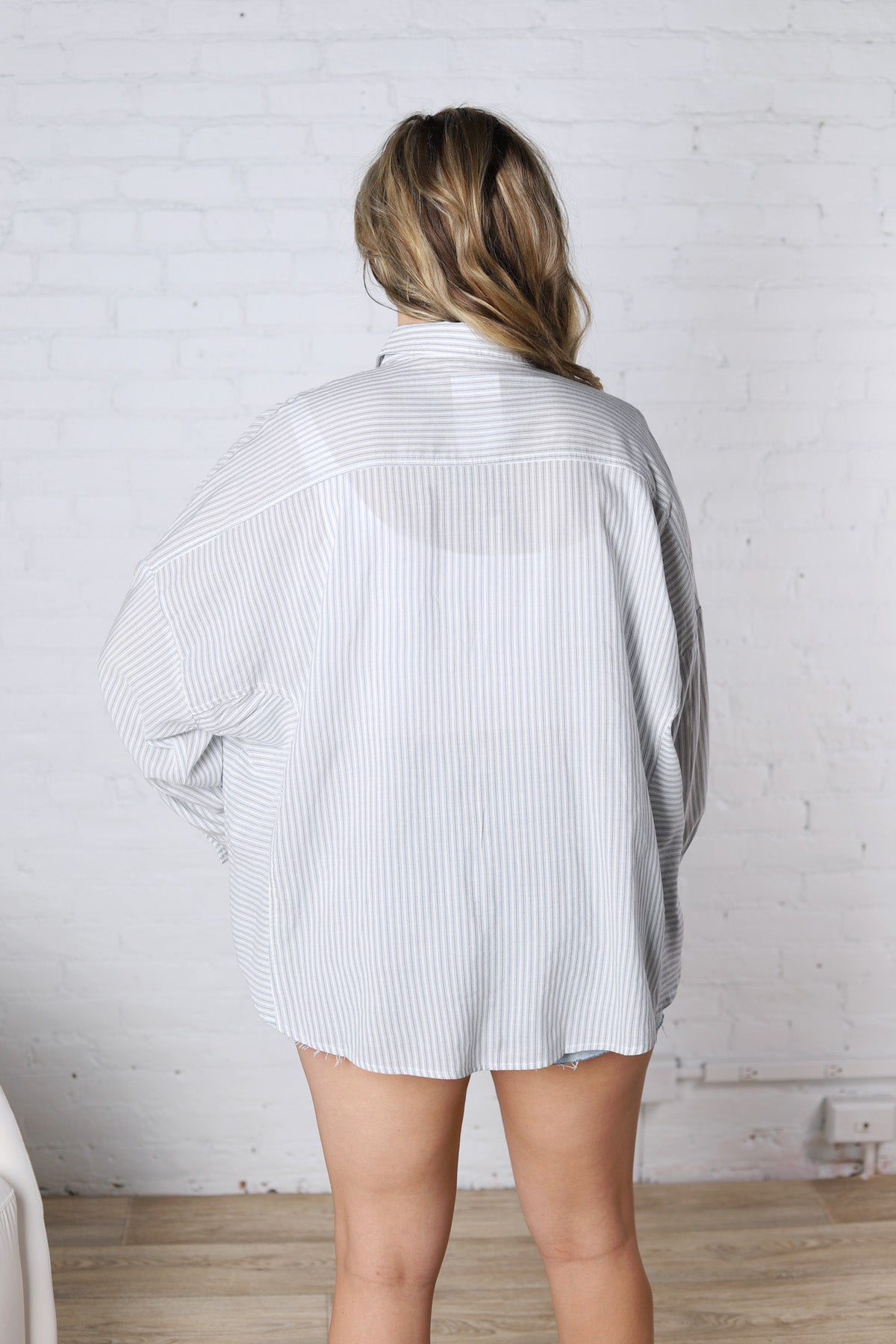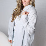 Bettina Oversized Striped Button-up Shirt - Dusty Blue – Gallery 512 Boutique