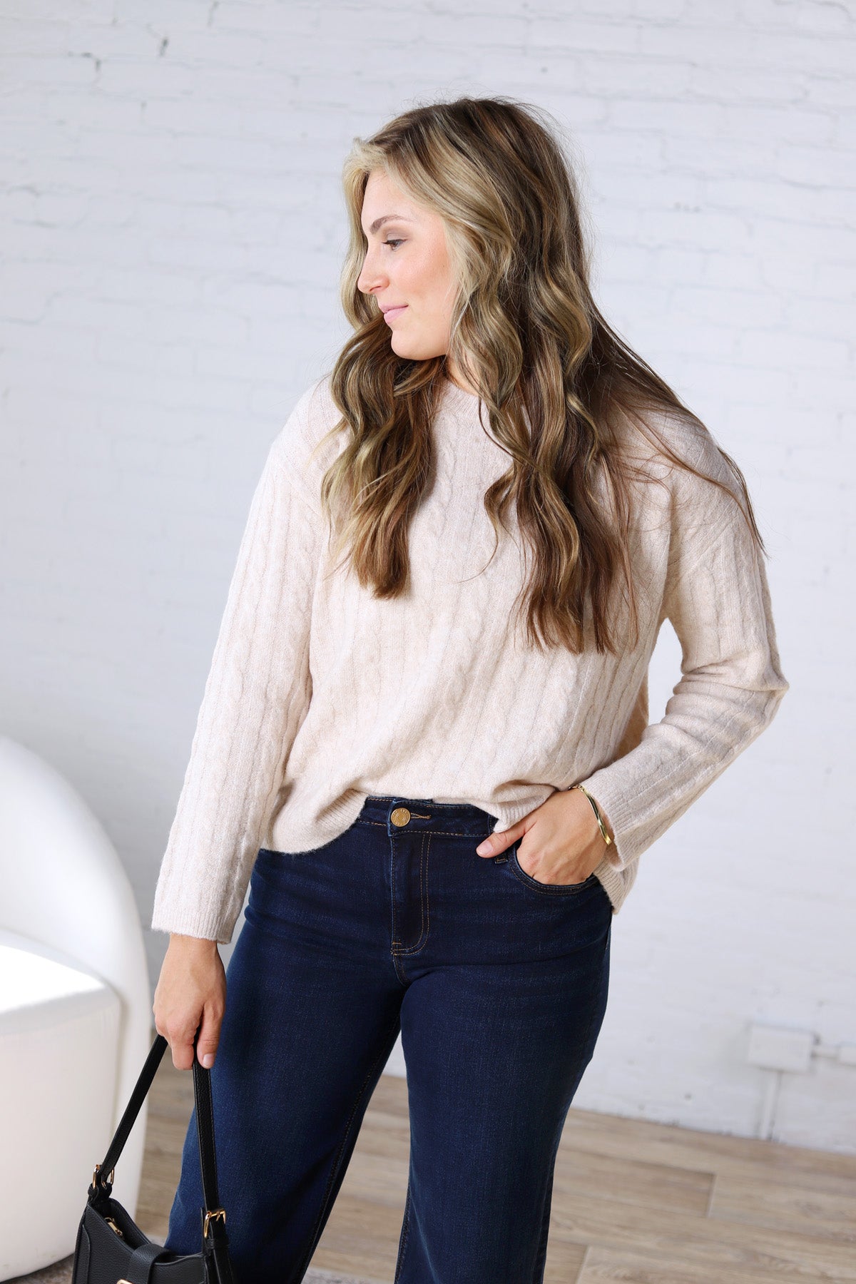 Effortlessly cozy with timeless charm, the Brinlee Sweater is designed with a relaxed, oversized boy-cut fit that makes it a staple for every casual wardrobe. Featuring a classic cable knit design, this lightweight sweater offers soft touch comfort while still delivering an elevated look.