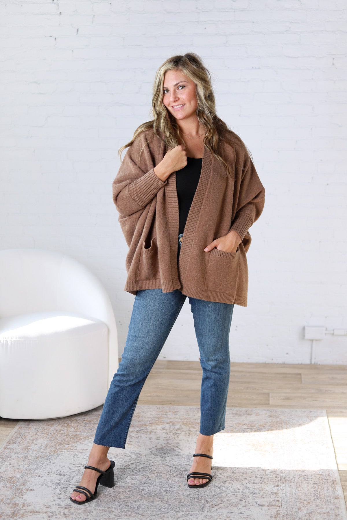 Callista Dolman Sleeve Open Cardigan - Mocha
