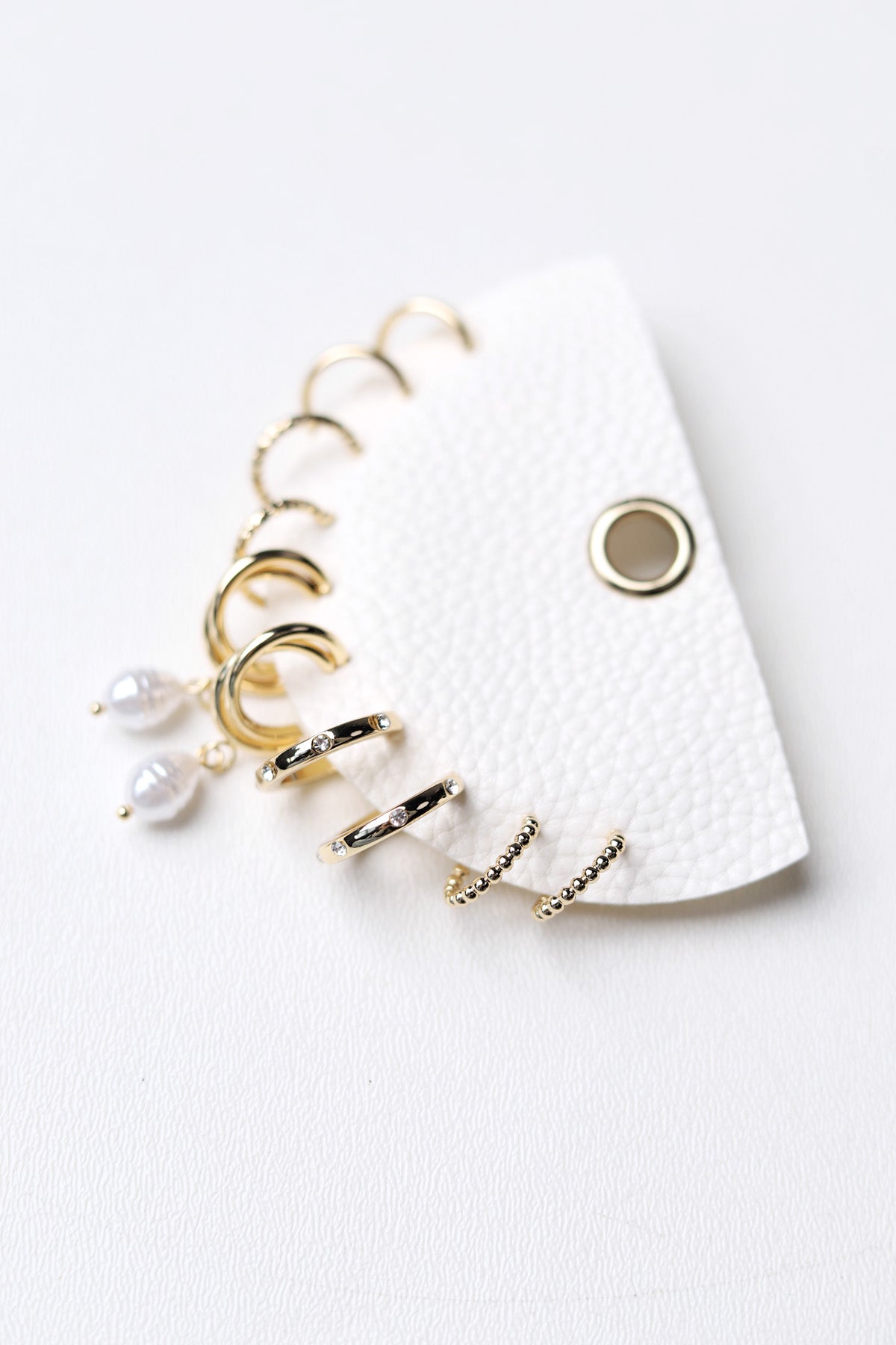 Meet your new go-to earring collection. The Caylen Mixed Metallic Hoop Earrings Set features five unique pairs, each with its own personality—perfect for mixing, matching, and styling from day to night. From sleek and smooth gold hoops to textured designs and pearl-accented charms, this curated set gives you endless options without the effort.