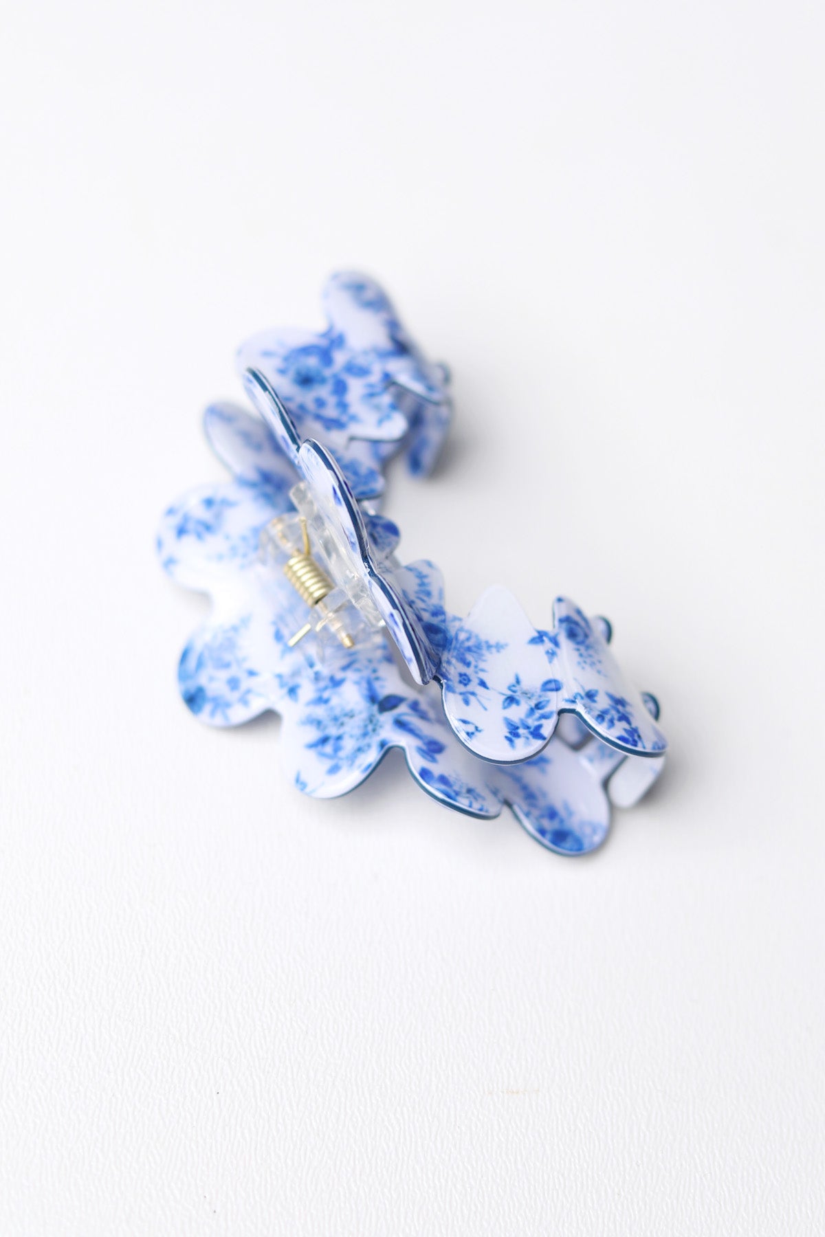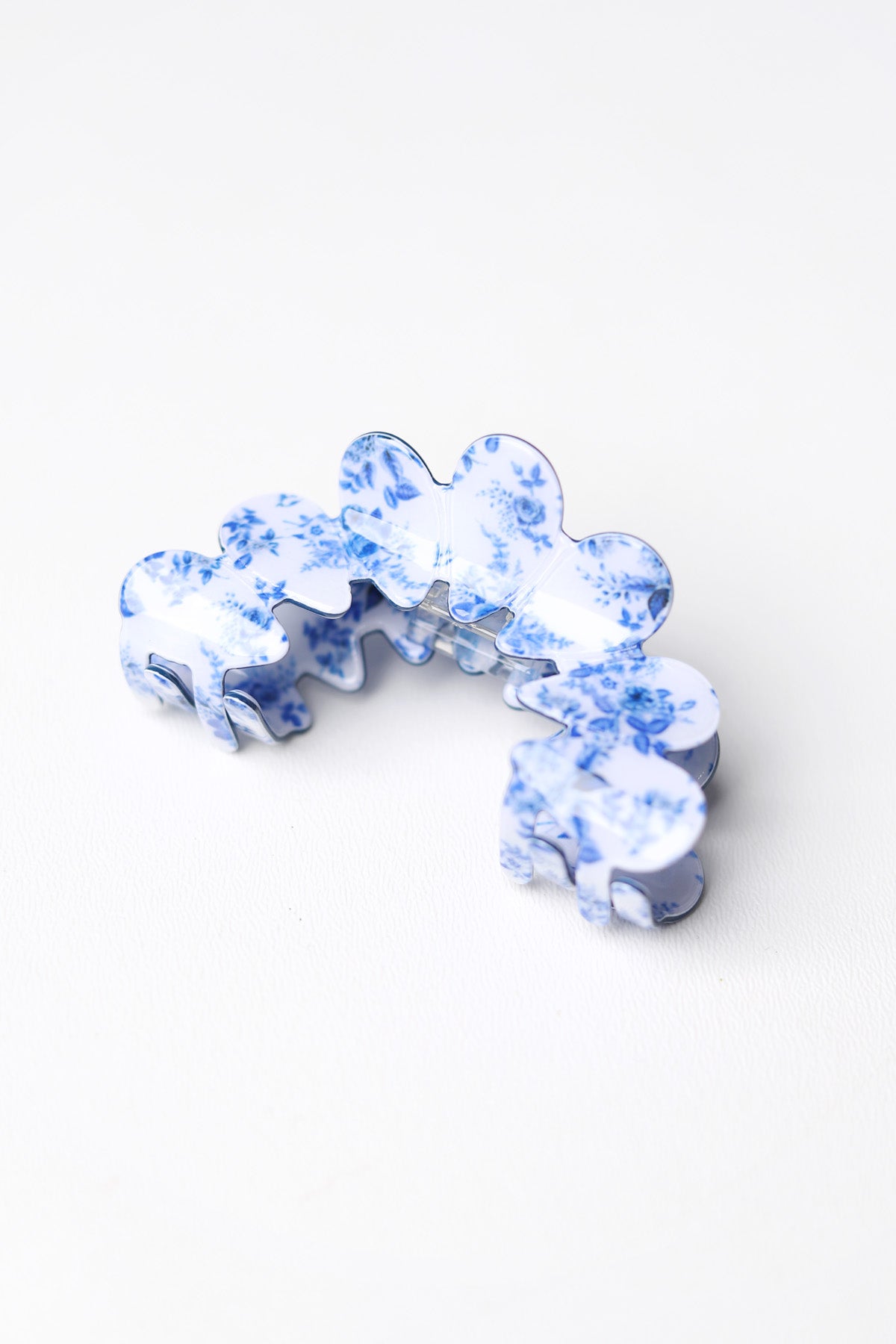Add a touch of timeless elegance to your everyday hair styling with the Clara Vintage Porcelain Half Moon Claw Clip. Designed with a classic half-moon silhouette, this claw clip features a delicate porcelain-inspired toile pattern in rich royal blue—bringing vintage charm and refined beauty to any look.