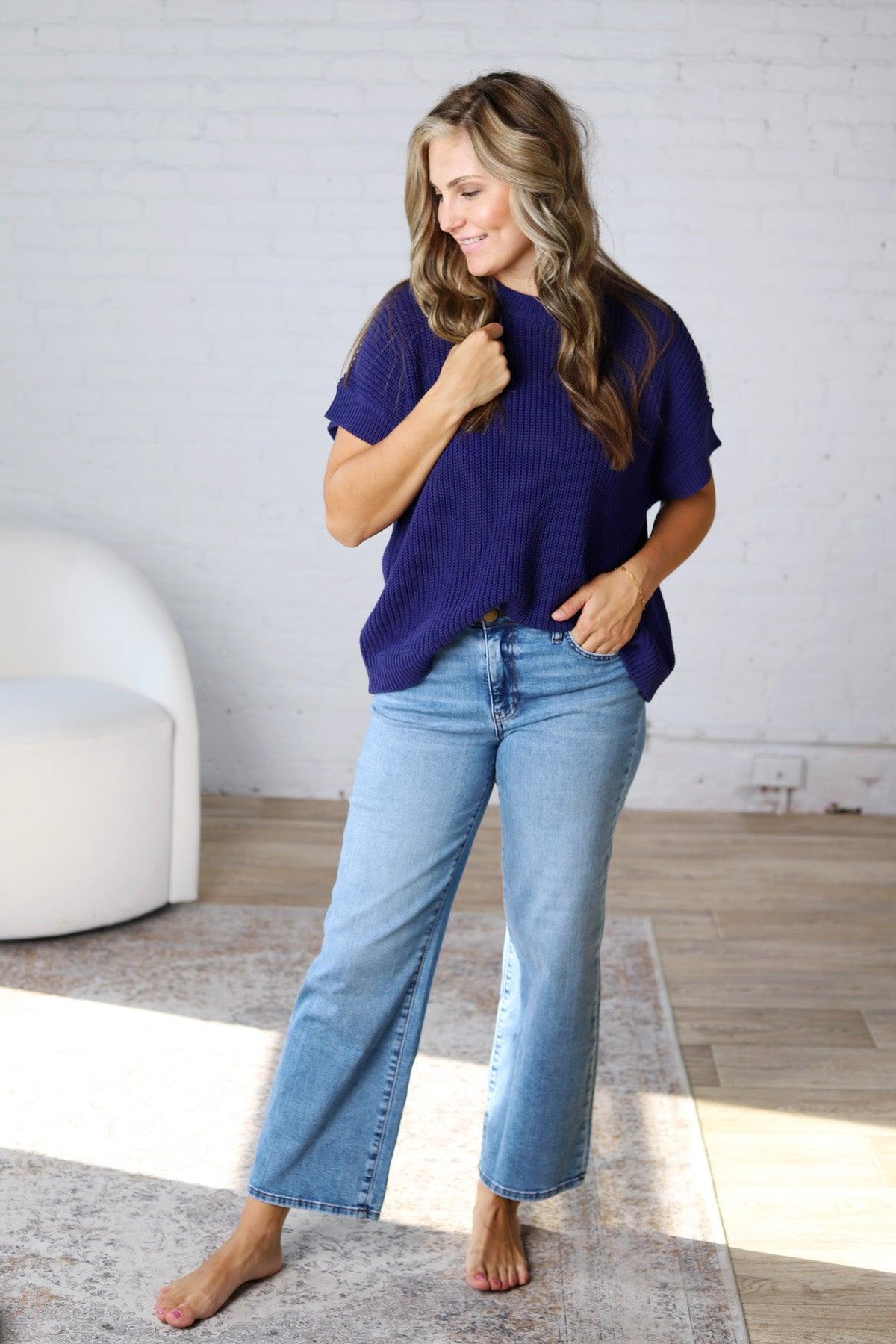 The Cristin Sweater is the perfect blend of comfort and structure. Made from 100% cotton, this short sleeve knit pullover features a crew neckline, wide sleeves, and a subtly oversized fit. The chunky texture and bold hue add a modern edge to this classic silhouette, making it an ideal choice for transitional layering or effortless standalone style.