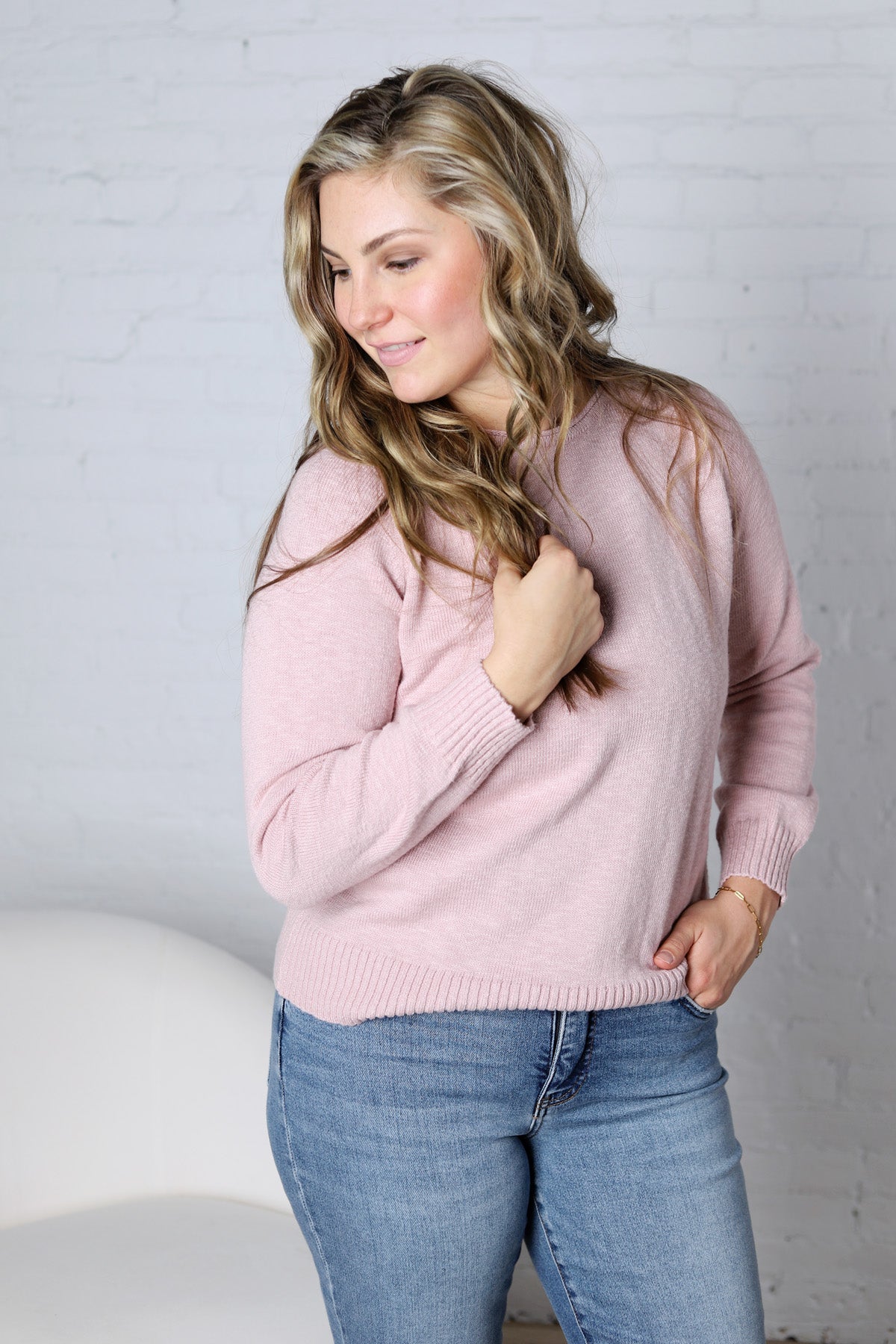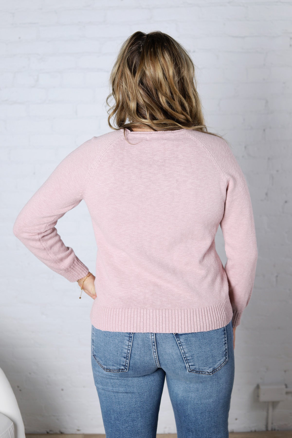 Delany Raglan Sleeve Slub Pullover Sweater - Dusty Pink