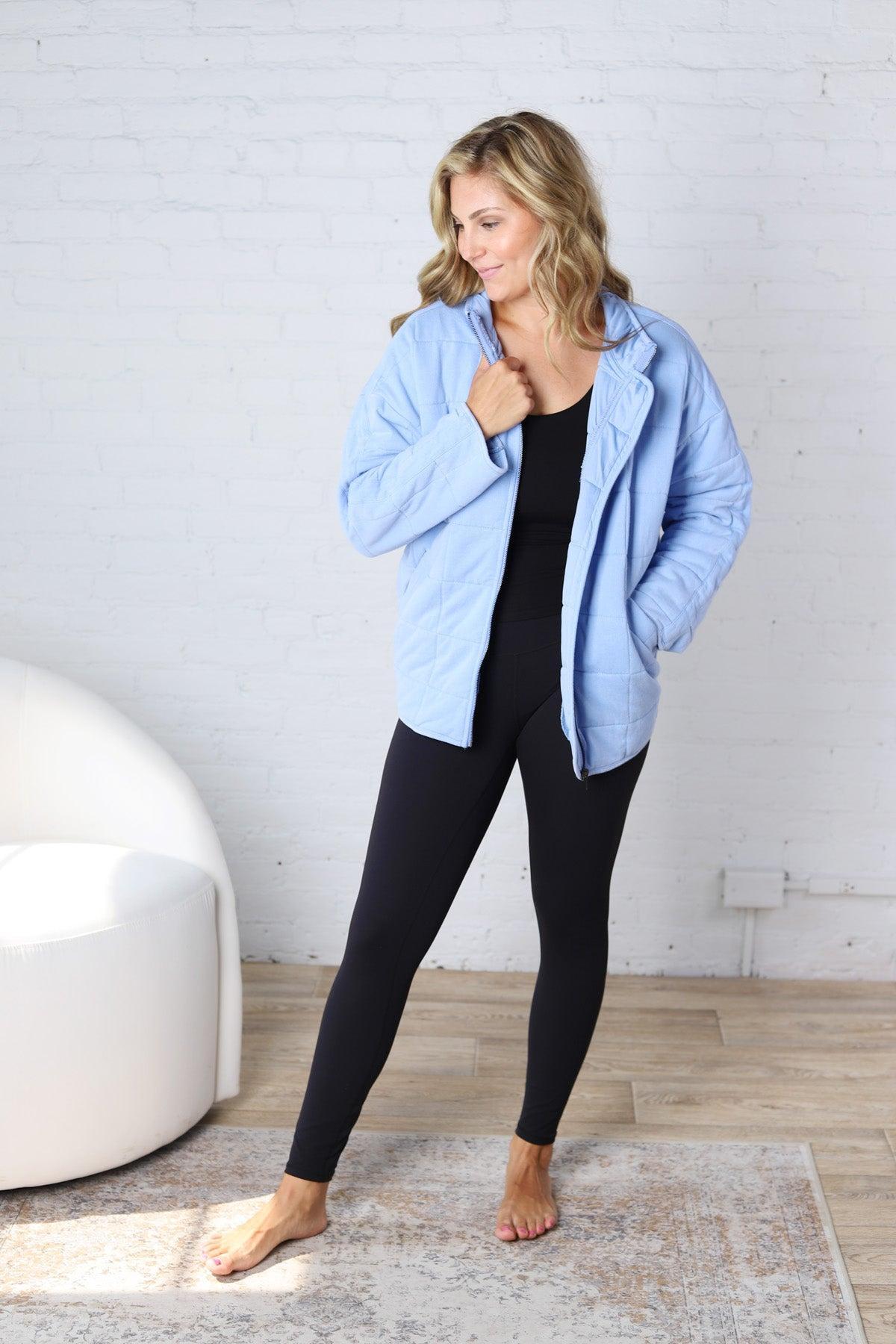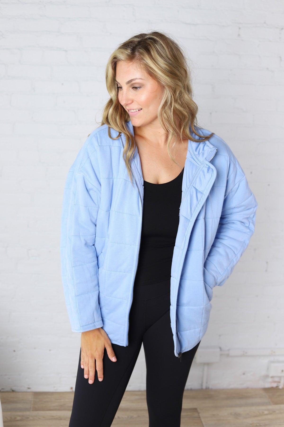 The Ellery Quilted Jacket is the perfect blend of comfort and style. Designed with an oversized, relaxed fit, this jacket offers a laid-back yet effortlessly chic look. The quilted texture adds warmth and dimension, making it an ideal layering piece for cooler days. Whether you're running errands or heading out for a casual outing, the Ellery Quilted Jacket provides both coziness and modern appeal. Available in Sky Blue and Denim.
