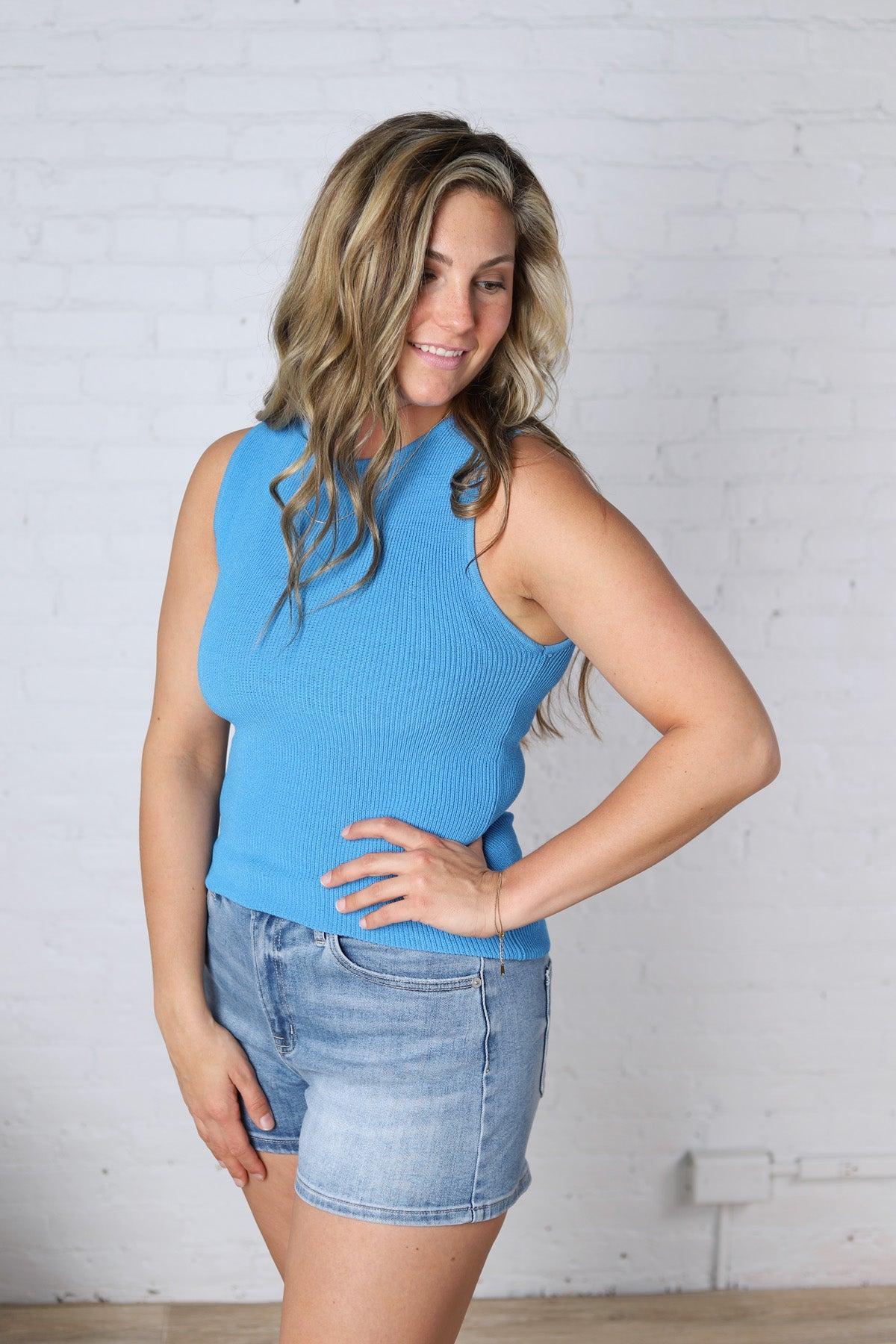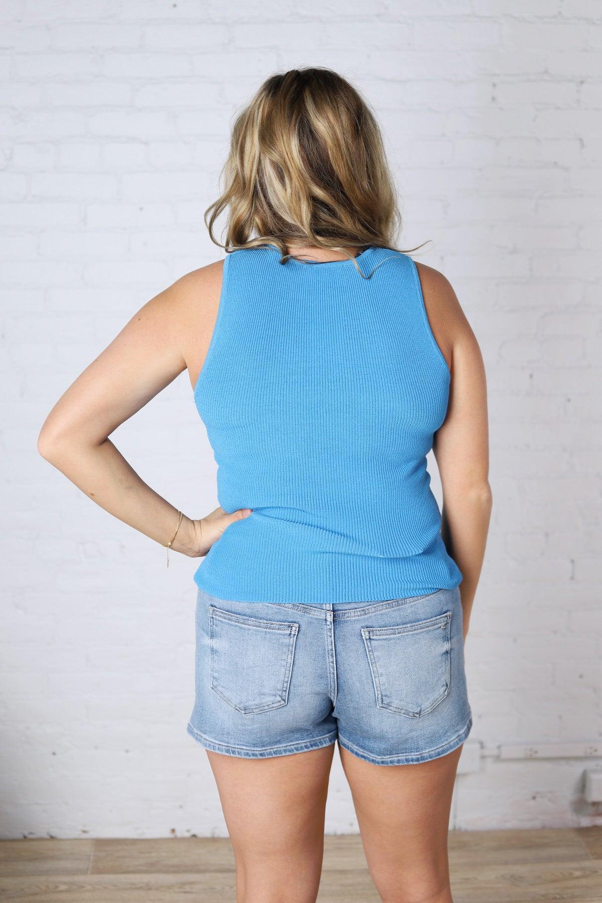 Elodie Ribbed Knit Tank - Blue