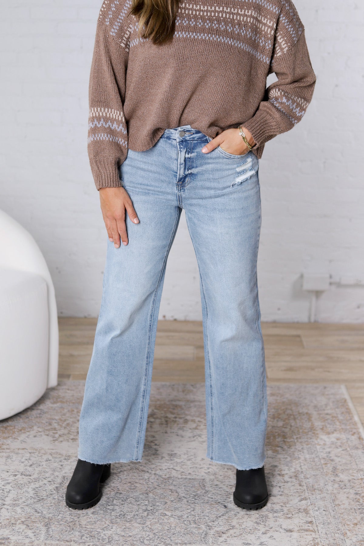 A denim dream with West Coast flair — the Eloise jean by Mica delivers a fresh take on vintage-inspired style. Designed with a super high rise and flattering wide leg silhouette, this pair elongates the legs and hugs in all the right places thanks to the premium stretch denim blend. Subtle distressing and a faded wash add effortless edge, while the long 31” inseam makes it perfect for pairing with heels or platforms. From casual brunches to weekend outings, this jean is your new go-to for chic comfort.