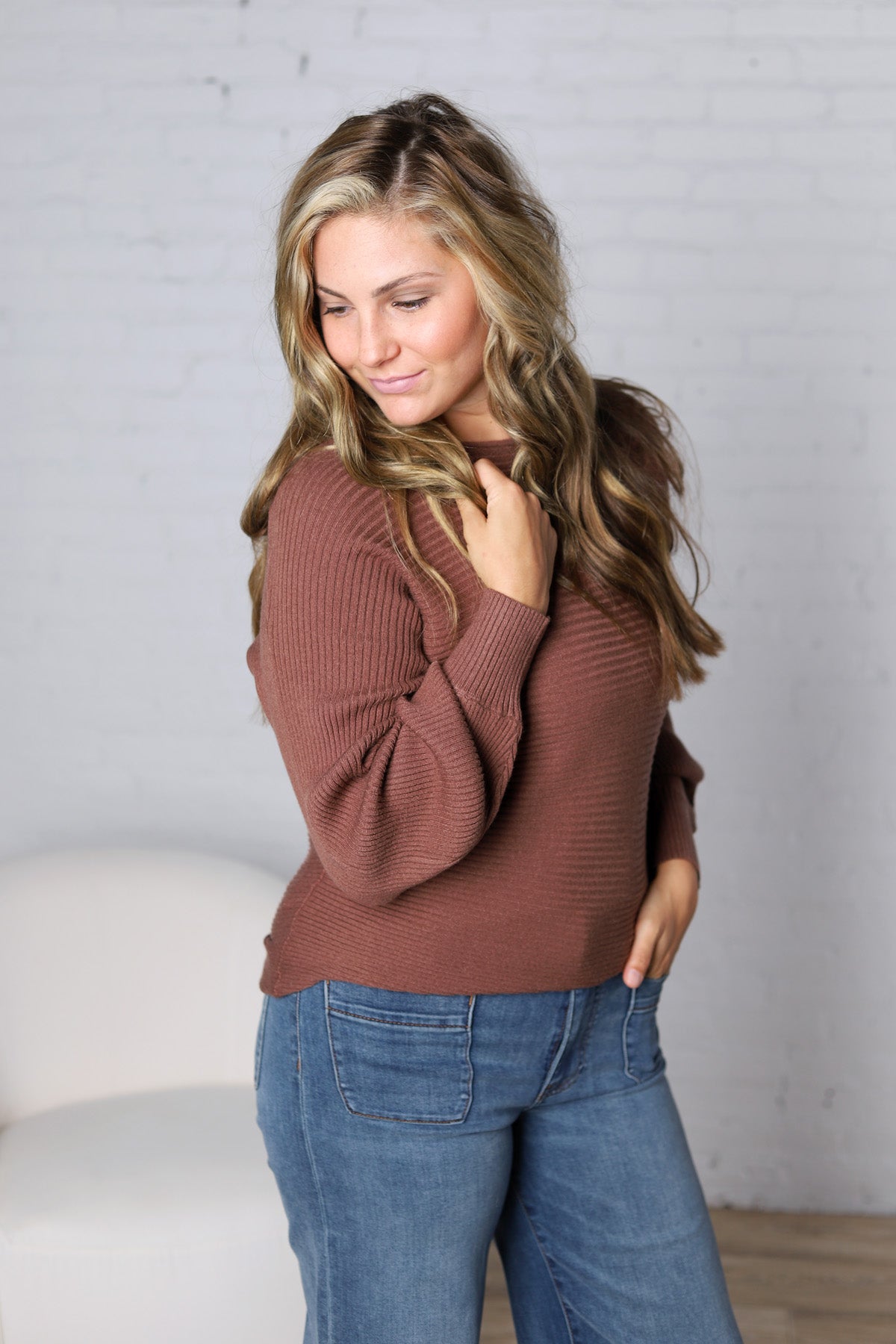 Esmerie Ribbed Knit Top - Brown