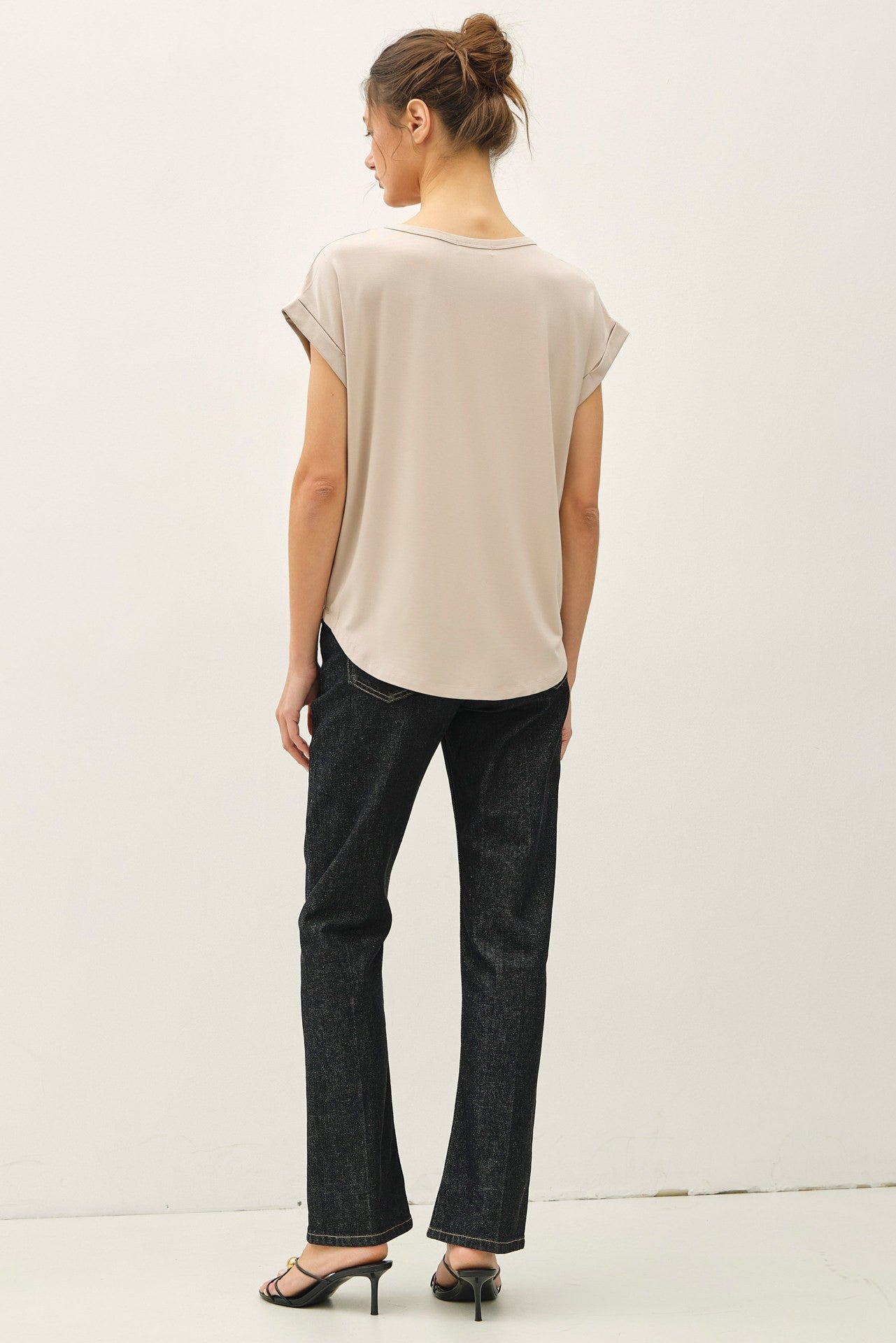Faye Bamboo Dolman Cap Sleeve Top - Stone