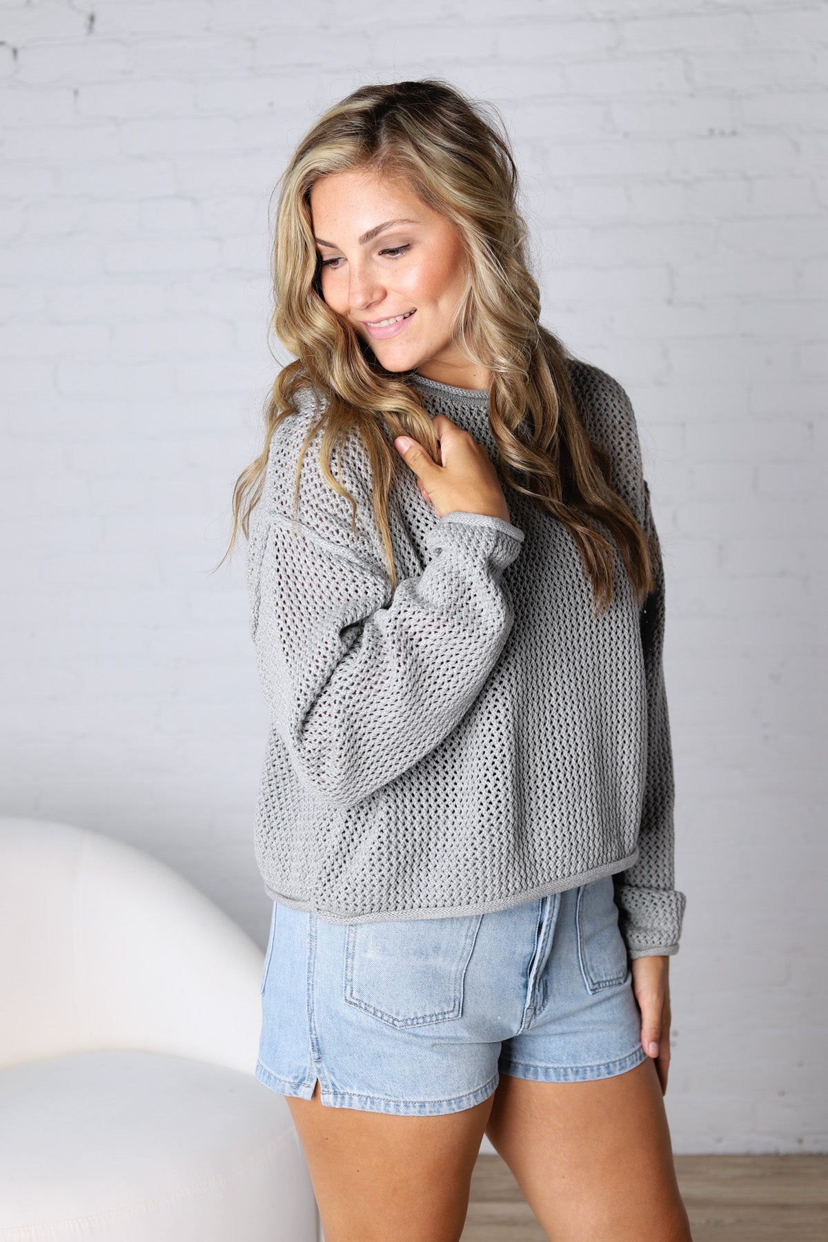 Halora Textured Knit Drop Shoulder Sweater - H. Grey FINAL SALE