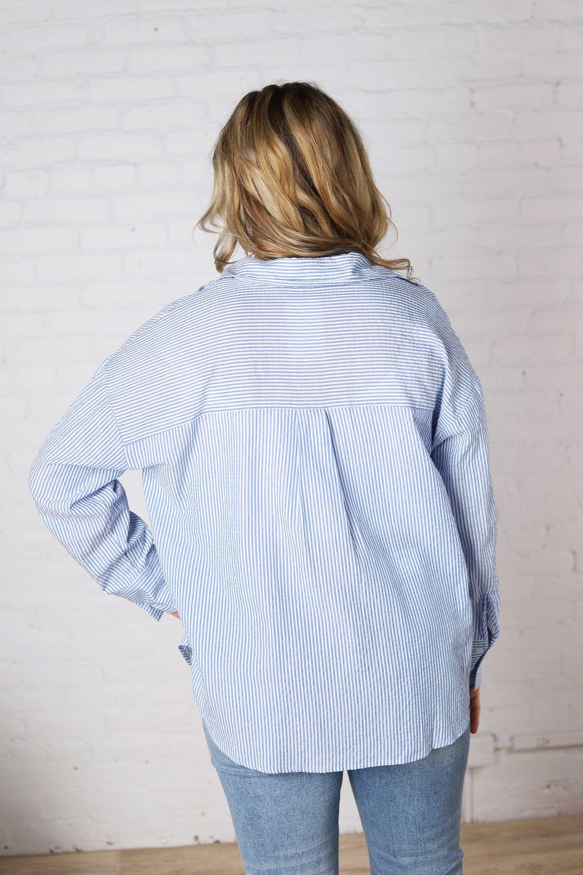 Harlow Stripe Oversized Button Down Shirt - Blue