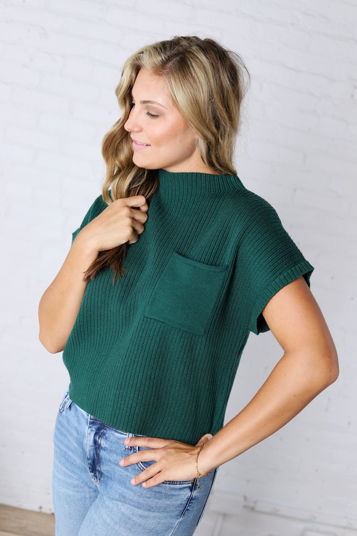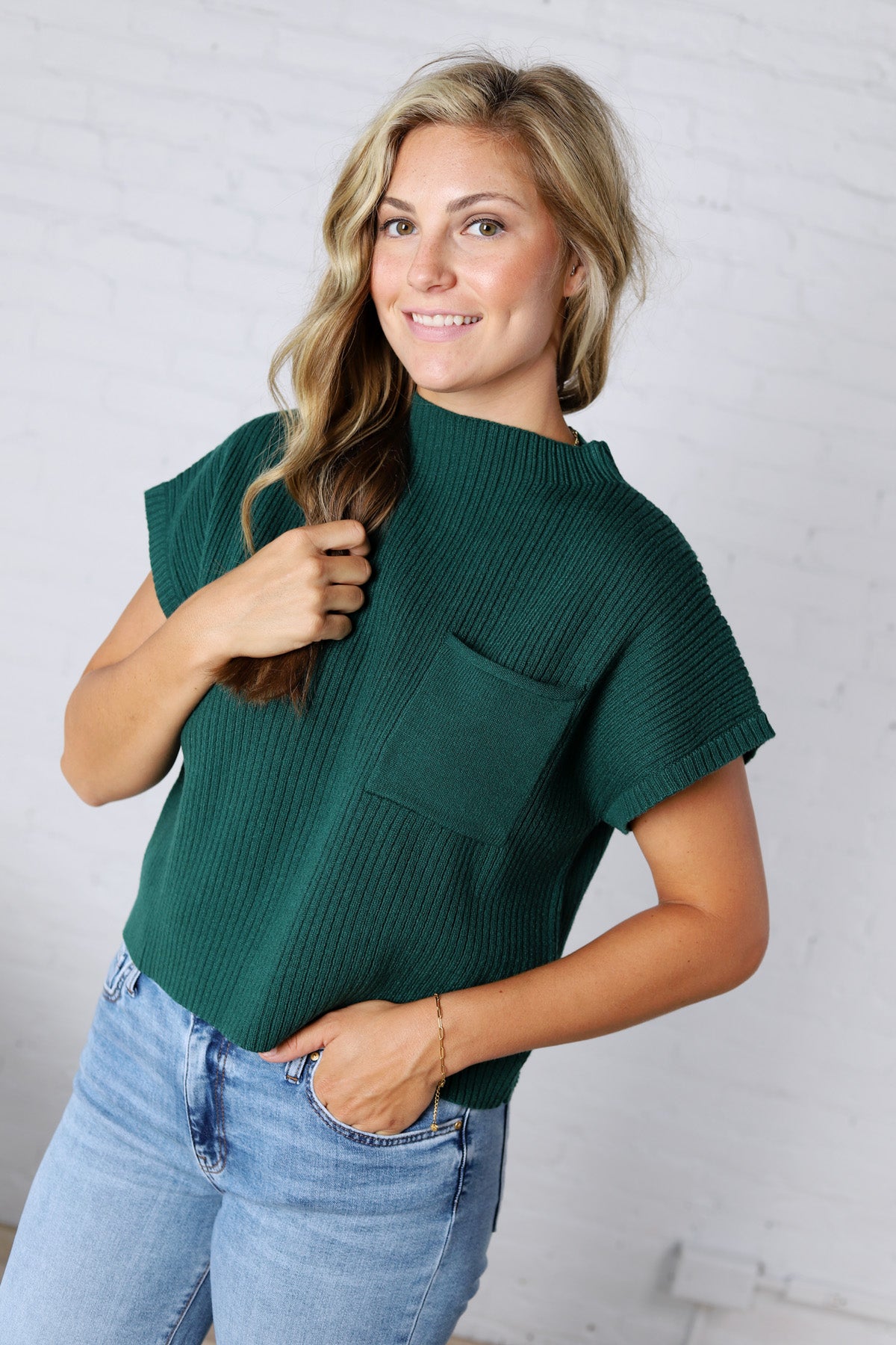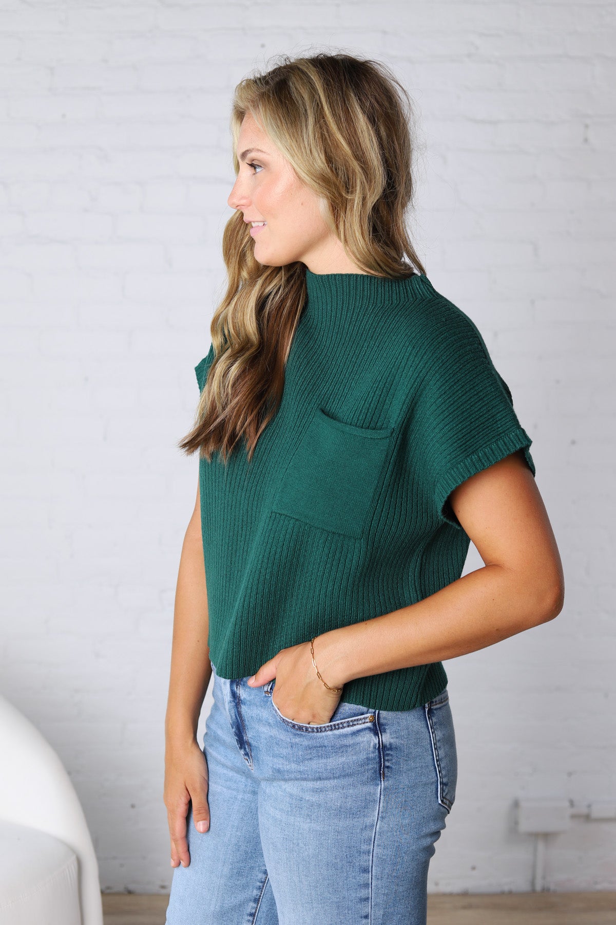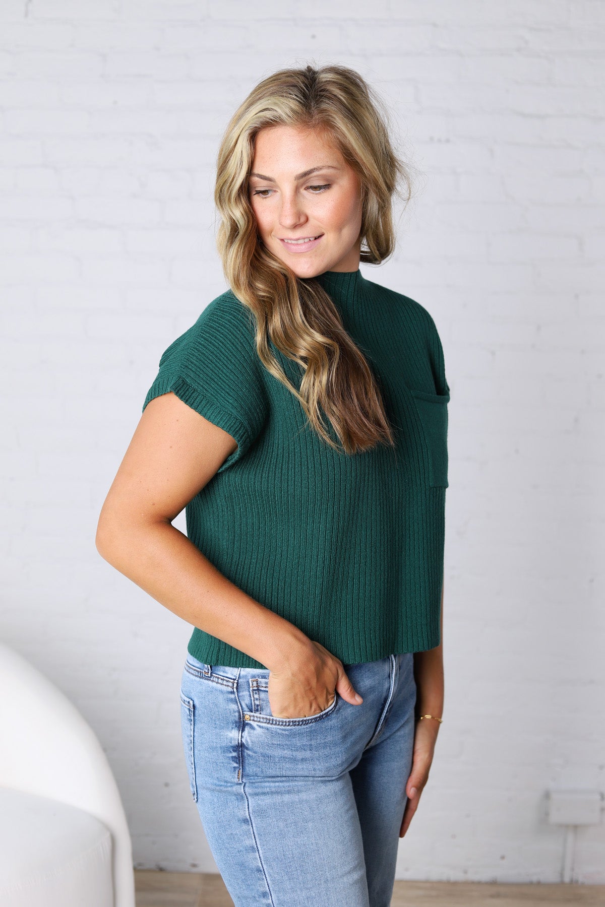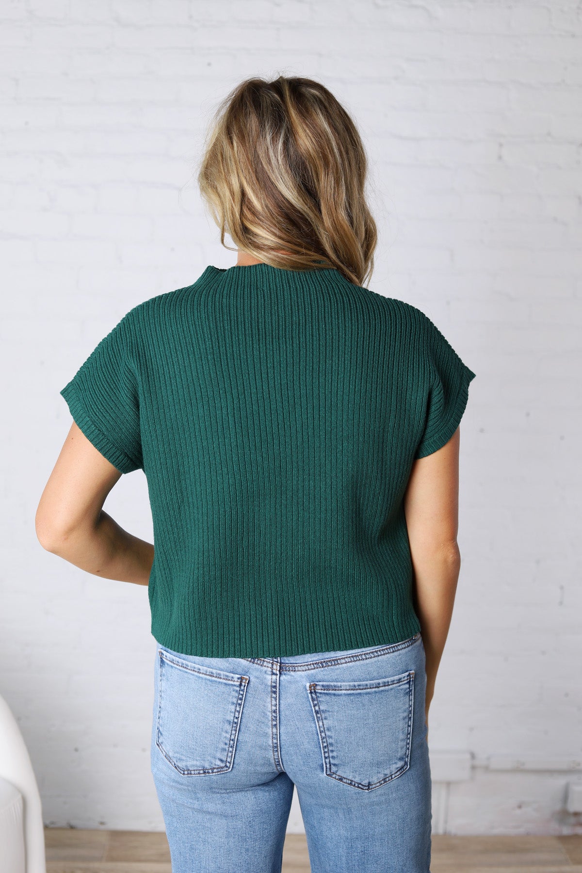 Hartlyn Ribbed Mock Neck Cap Sleeve Sweater - Hunter Green - FINAL SALE