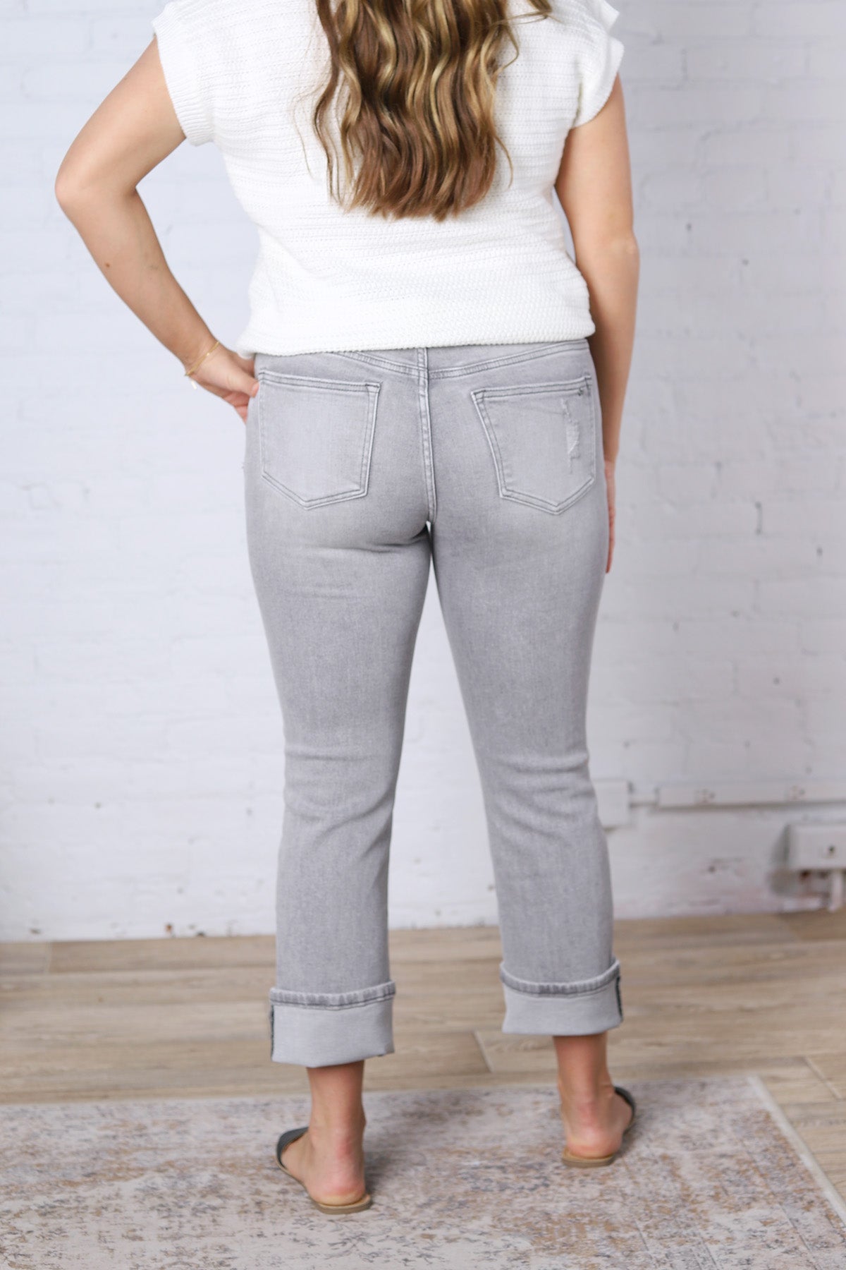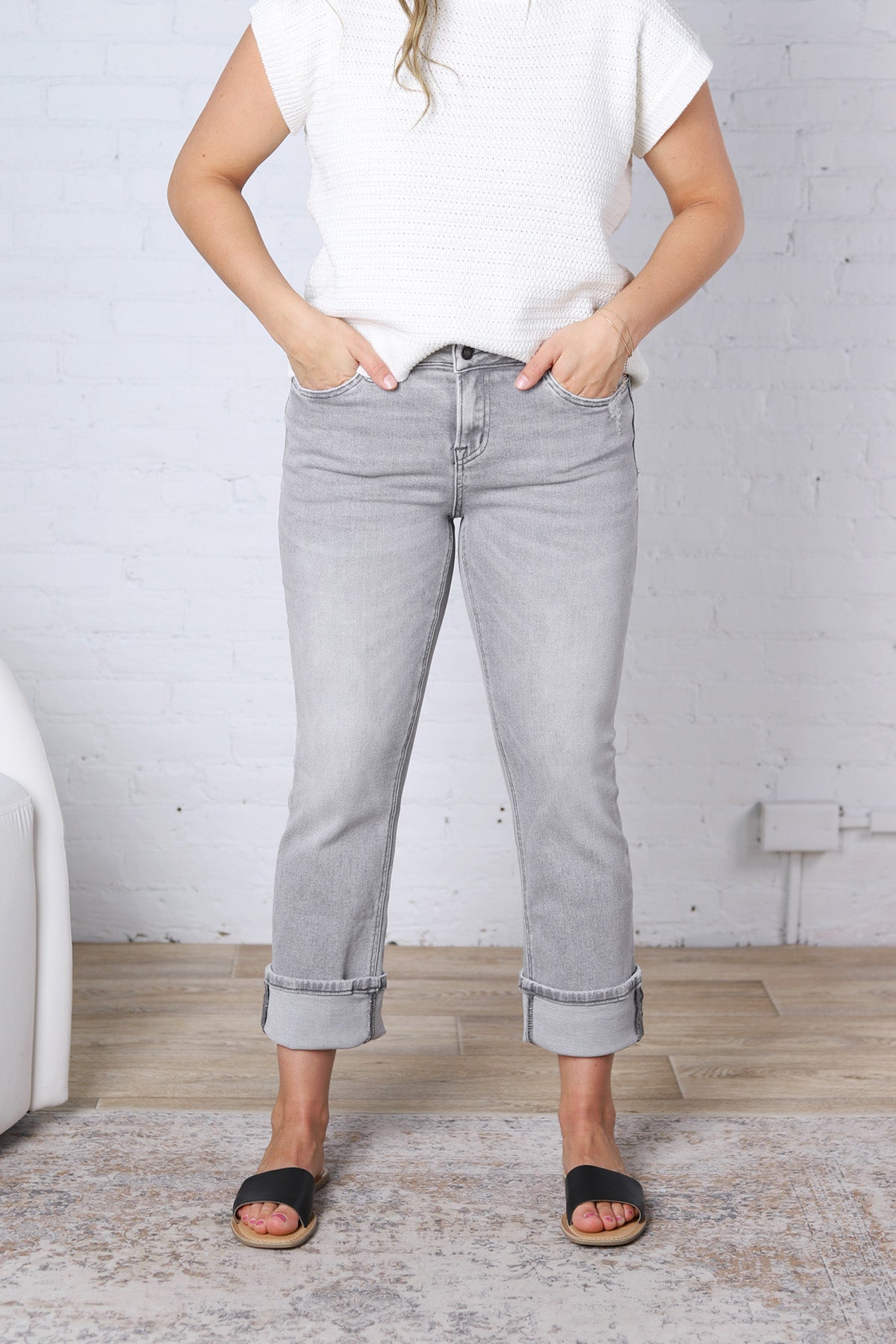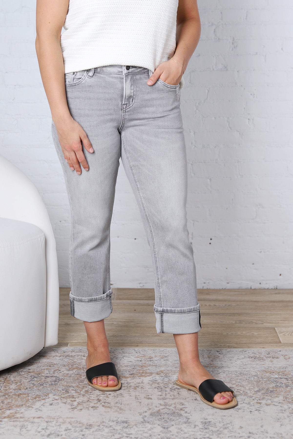 Hollyn Mid-Rise Cuffed Straight Leg - Vintage Grey