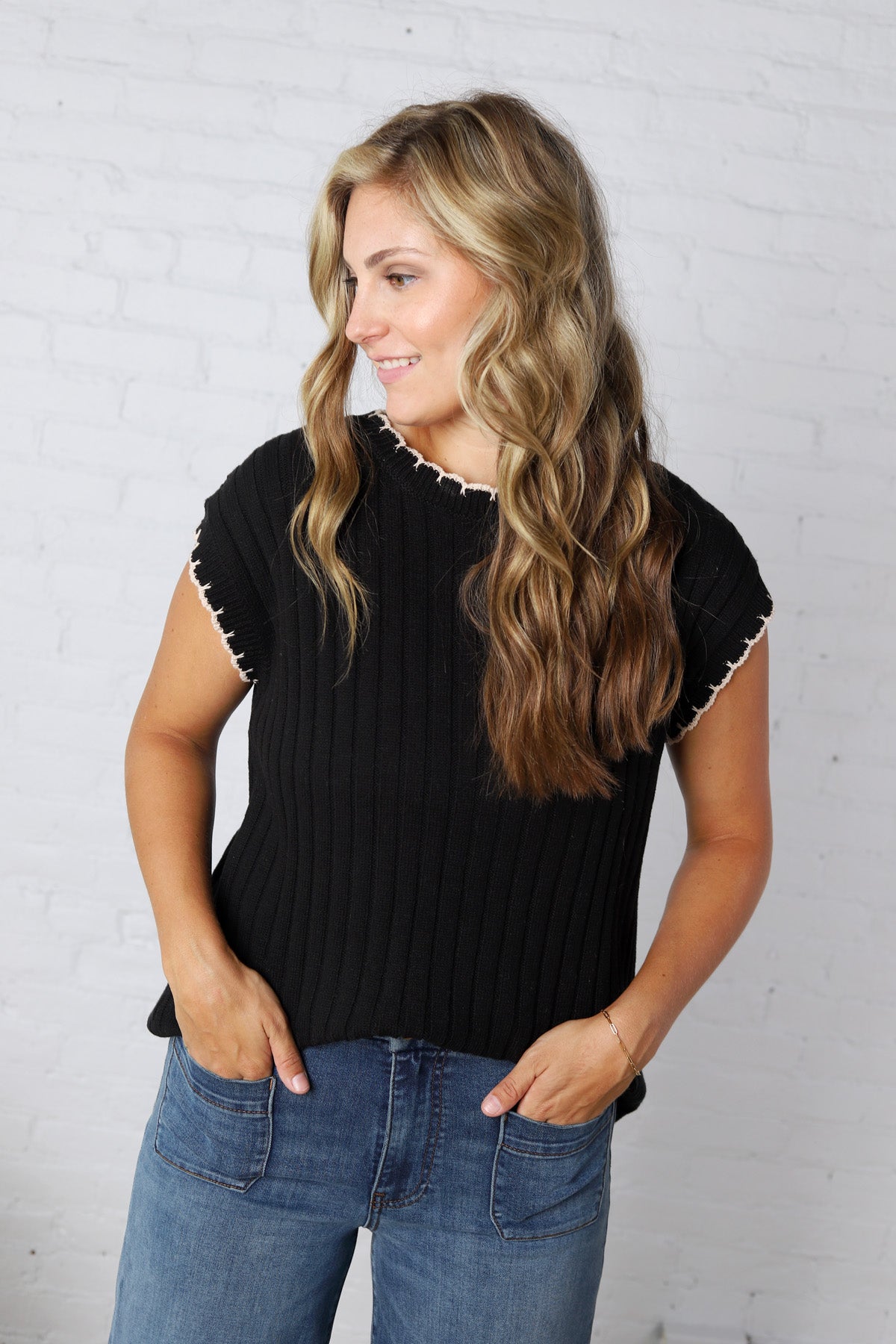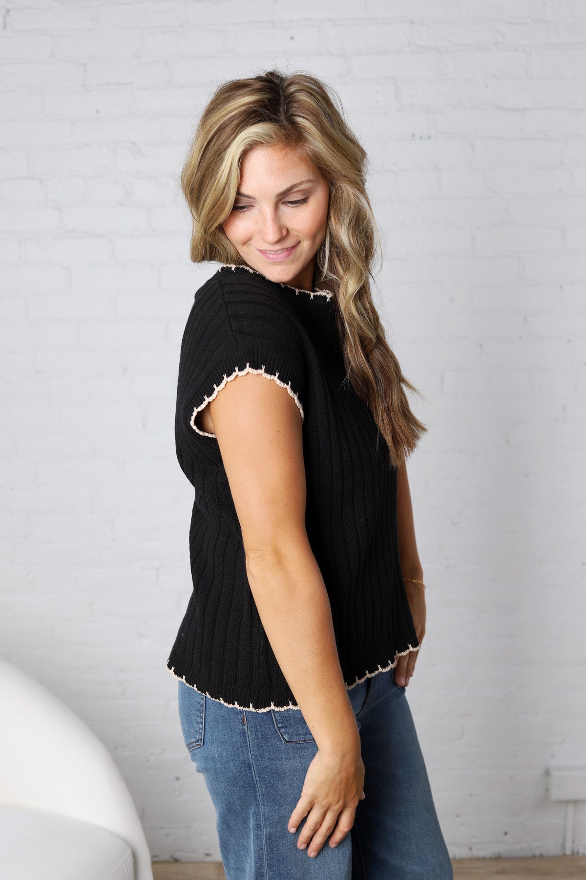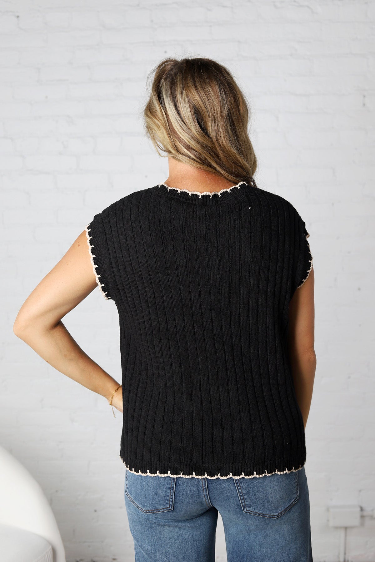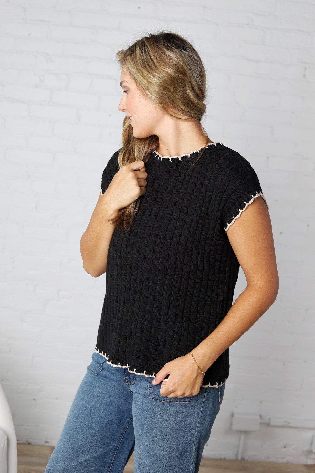 Ilaria Textured Stripe Knitted Sweater Top - Black/Oatmeal FINAL SALE