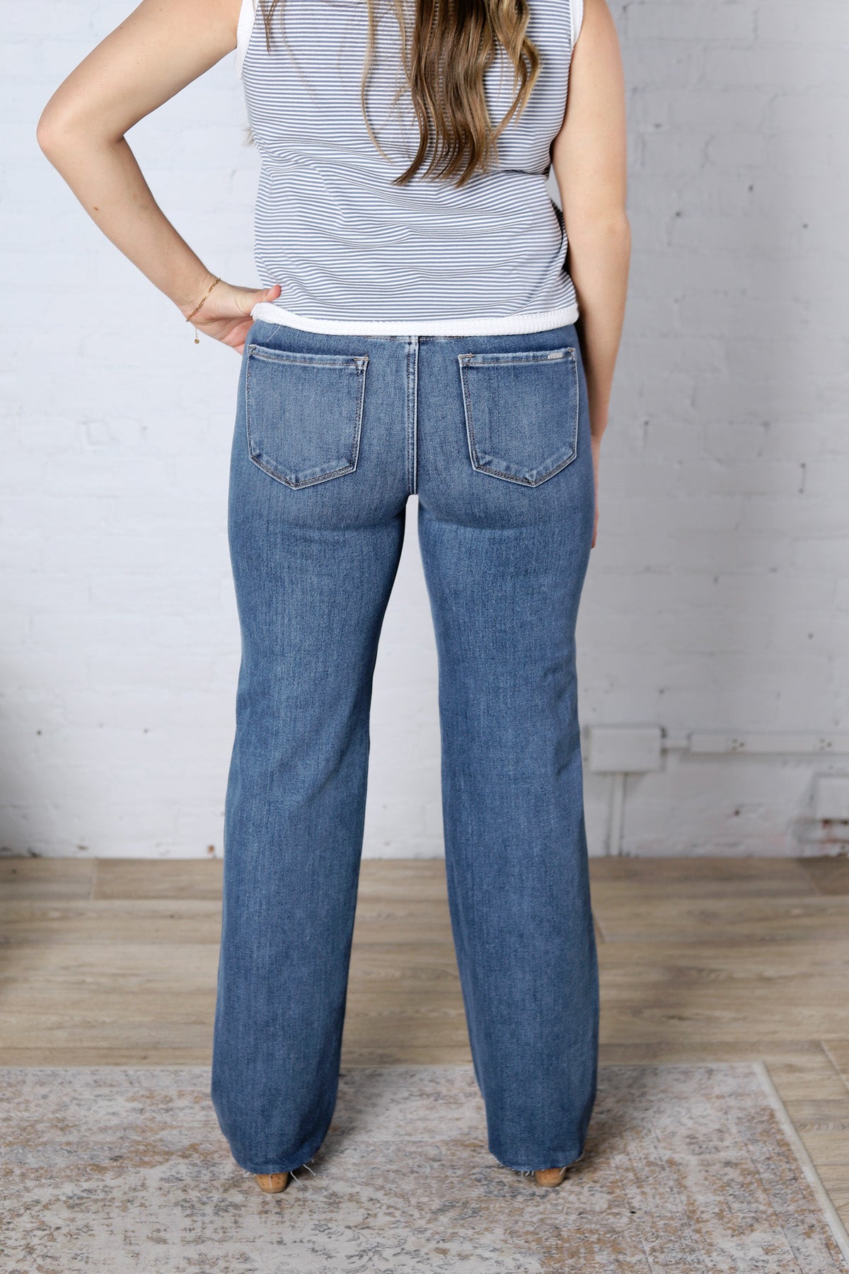 Meet your new everyday denim essential. The Jolee Mid Rise Straight Jean by Risen Jeans is designed with built-in tummy control and comfortable 4-way stretch for a flattering, confidence-boosting fit. With a classic straight leg silhouette and timeless wash, this pair is easy to dress up or down and made to move with you all day long.