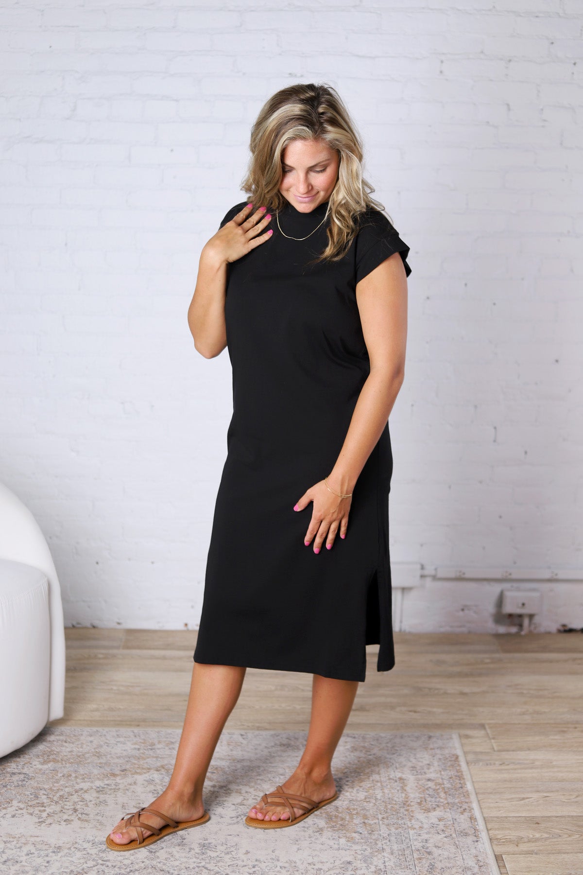 Effortless, comfortable, and endlessly wearable — the Kai Round Neck Short Sleeve Midi Dress is your go-to for easy, everyday style. Designed with a classic round neckline and relaxed short sleeves, this dress offers a clean, minimal silhouette that feels as good as it looks.