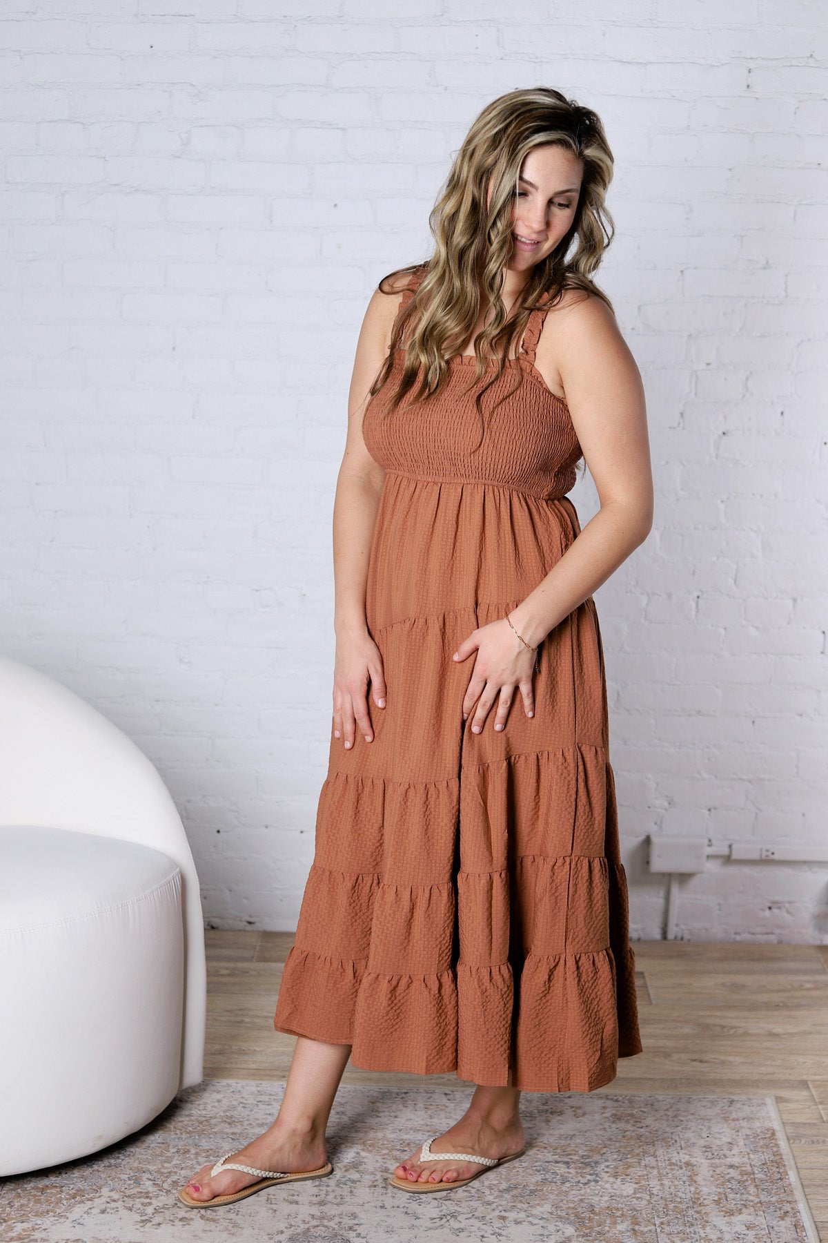 Kallin Smocked Tier Midi Dress – Gallery 512 Boutique