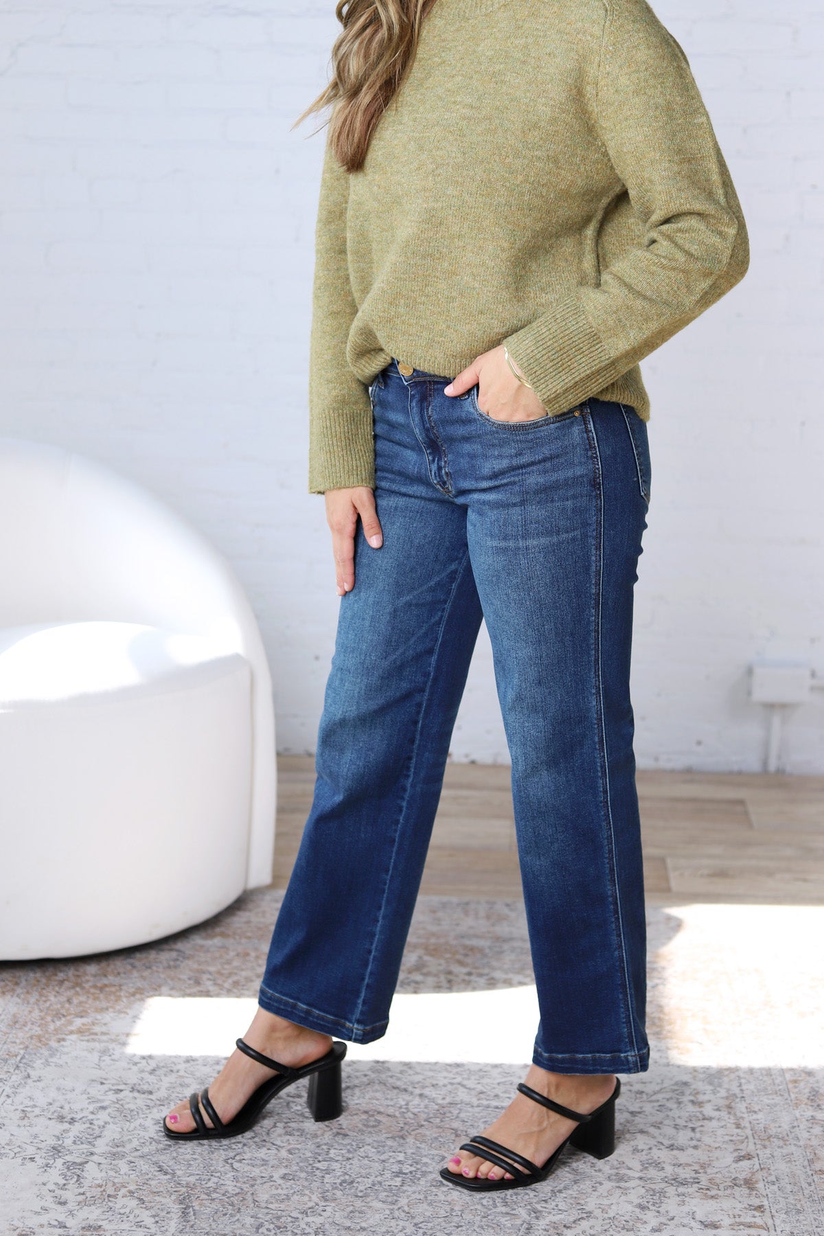 Timeless with a modern edge, the Pattie Straight Leg 5 Pocket jeans are your new go-to for effortless style. Featuring a flattering mid-high rise and just the right amount of stretch, they’re perfect for everyday wear. Dress them up with a blazer and heels or keep it casual with sneakers and a tucked-in tee—these jeans do it all.