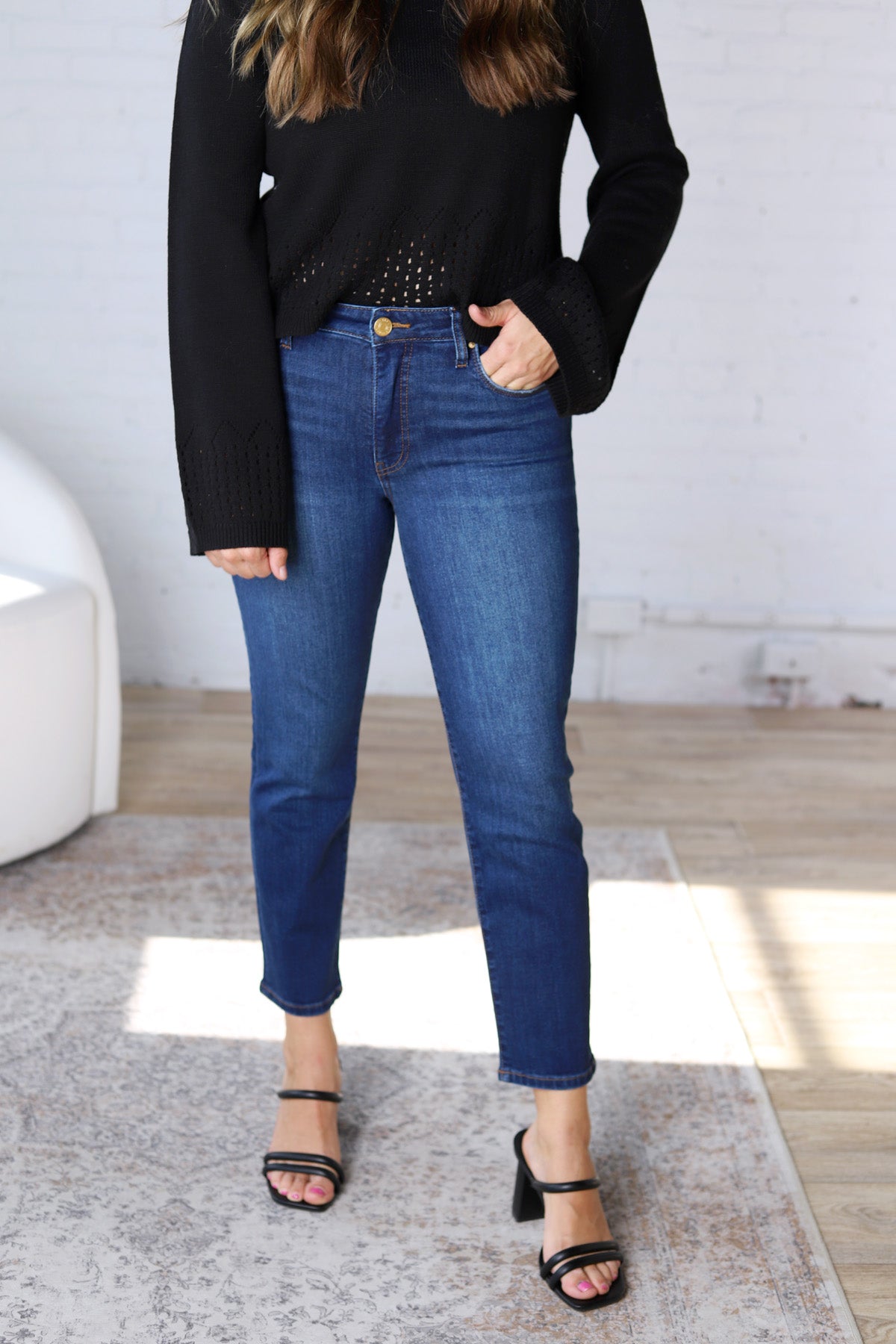 The Reese Ankle Straight Regular Hem Denim is your go-to for effortless everyday style. With a classic straight-leg fit and ankle-grazing length, this pair combines timeless structure with modern ease. Dress them up with a crisp button-down and loafers, or keep it casual with a relaxed tee and sneakers.