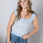 Leny Striped Square Neck Tank - Powder Blue