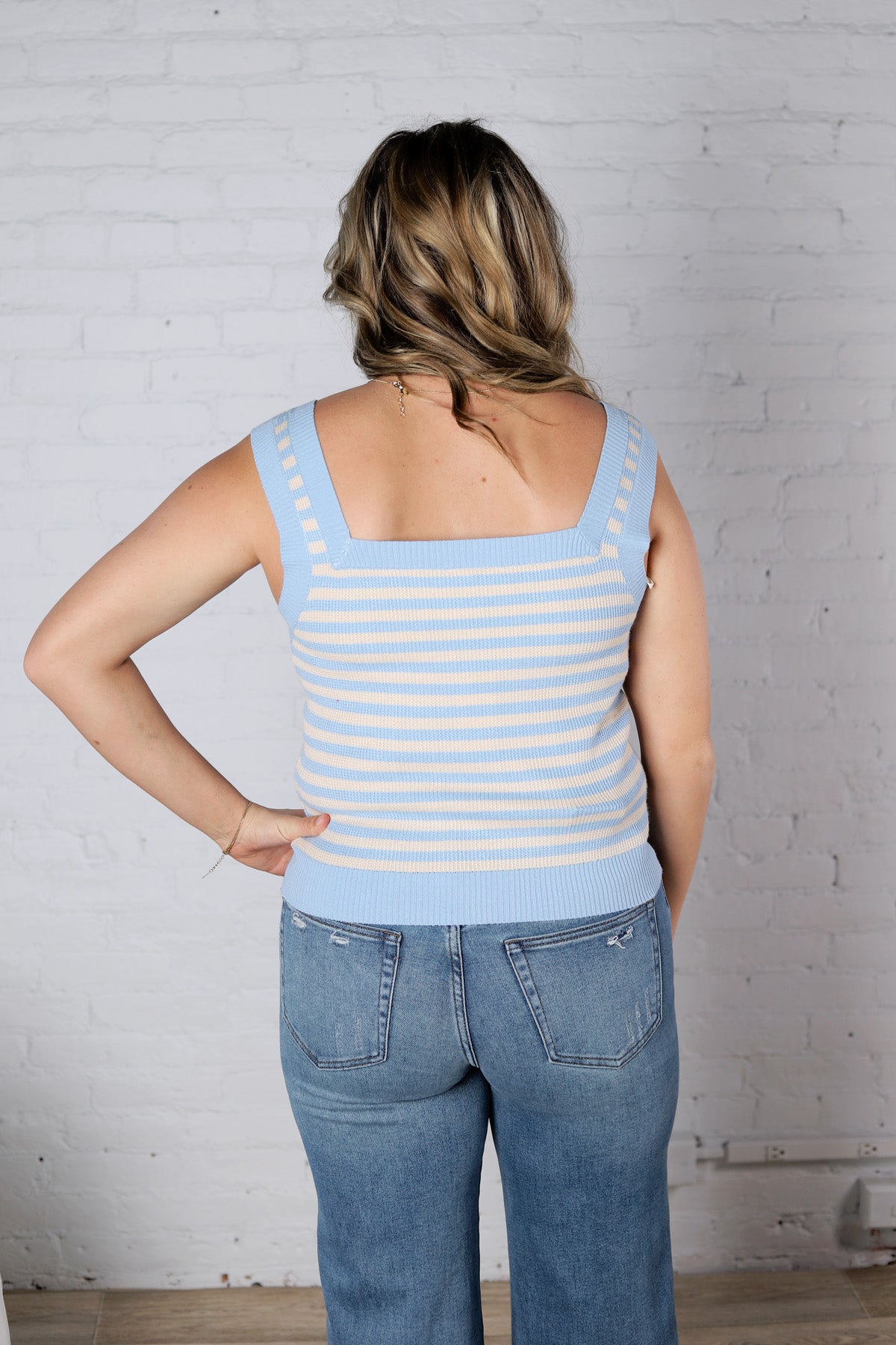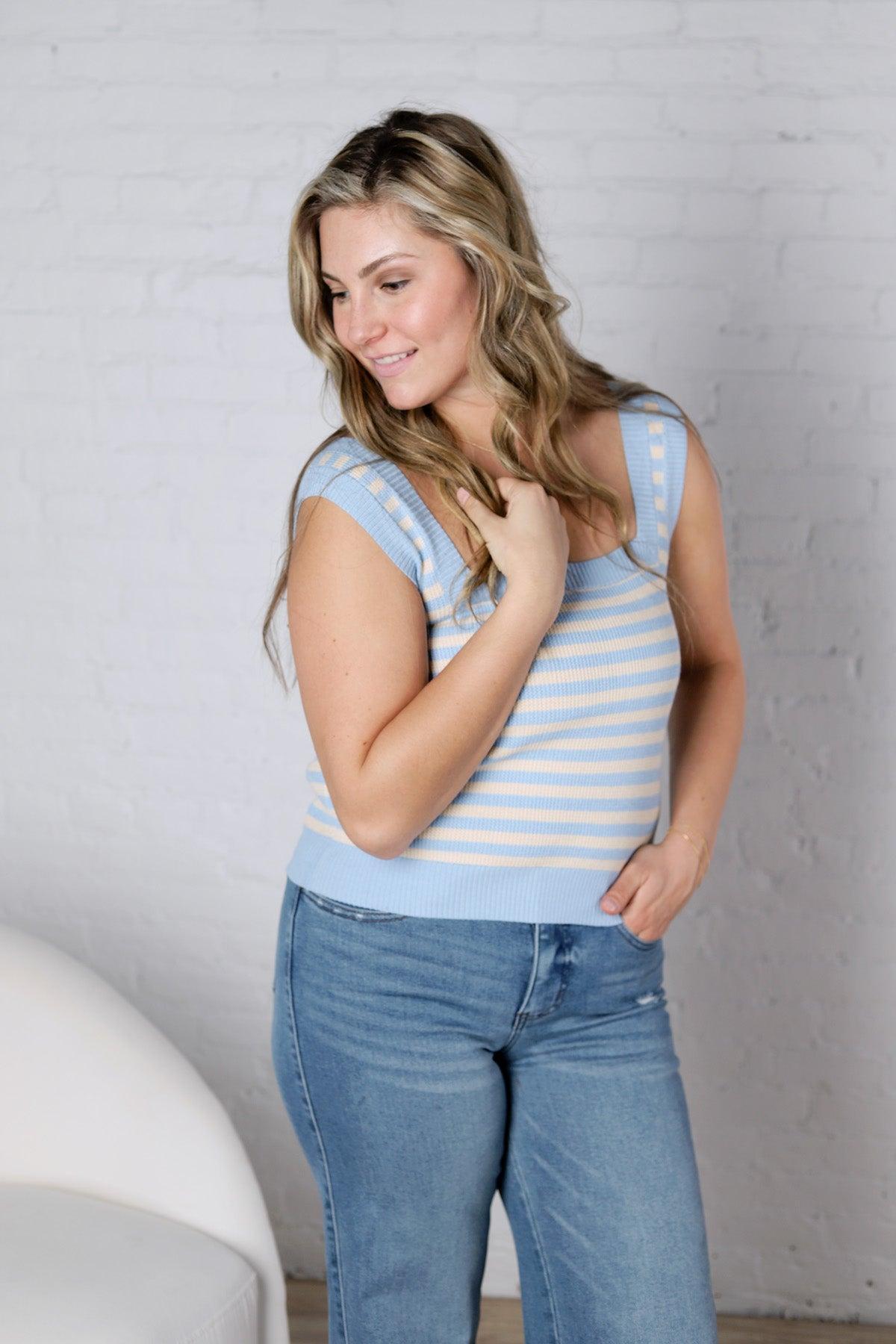 Leny Striped Square Neck Tank - Powder Blue