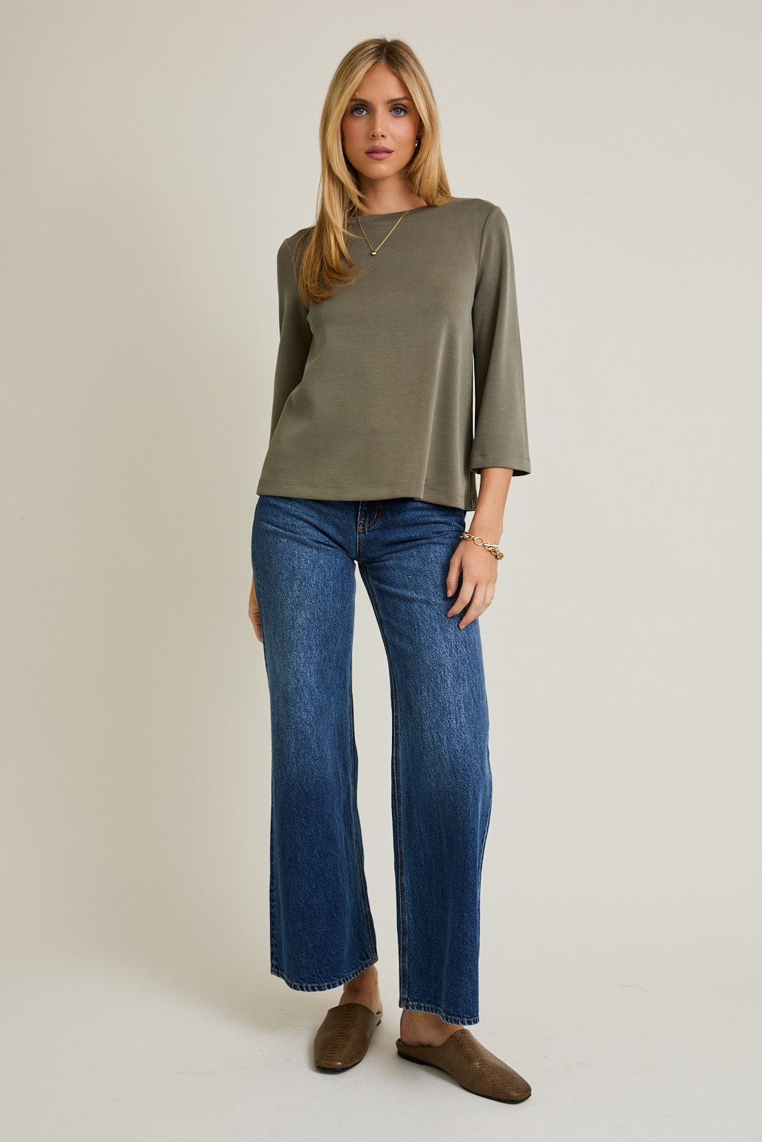Clean, modern, and endlessly versatile—the Mavi Round Neck Top is your new everyday staple. Crafted from a soft, stretchy modal-blend knit, this top drapes beautifully with a smooth, elevated feel. The flattering round neckline and relaxed silhouette offer ease and comfort, while the 3/4 sleeves add a polished, wear-anytime finish.
