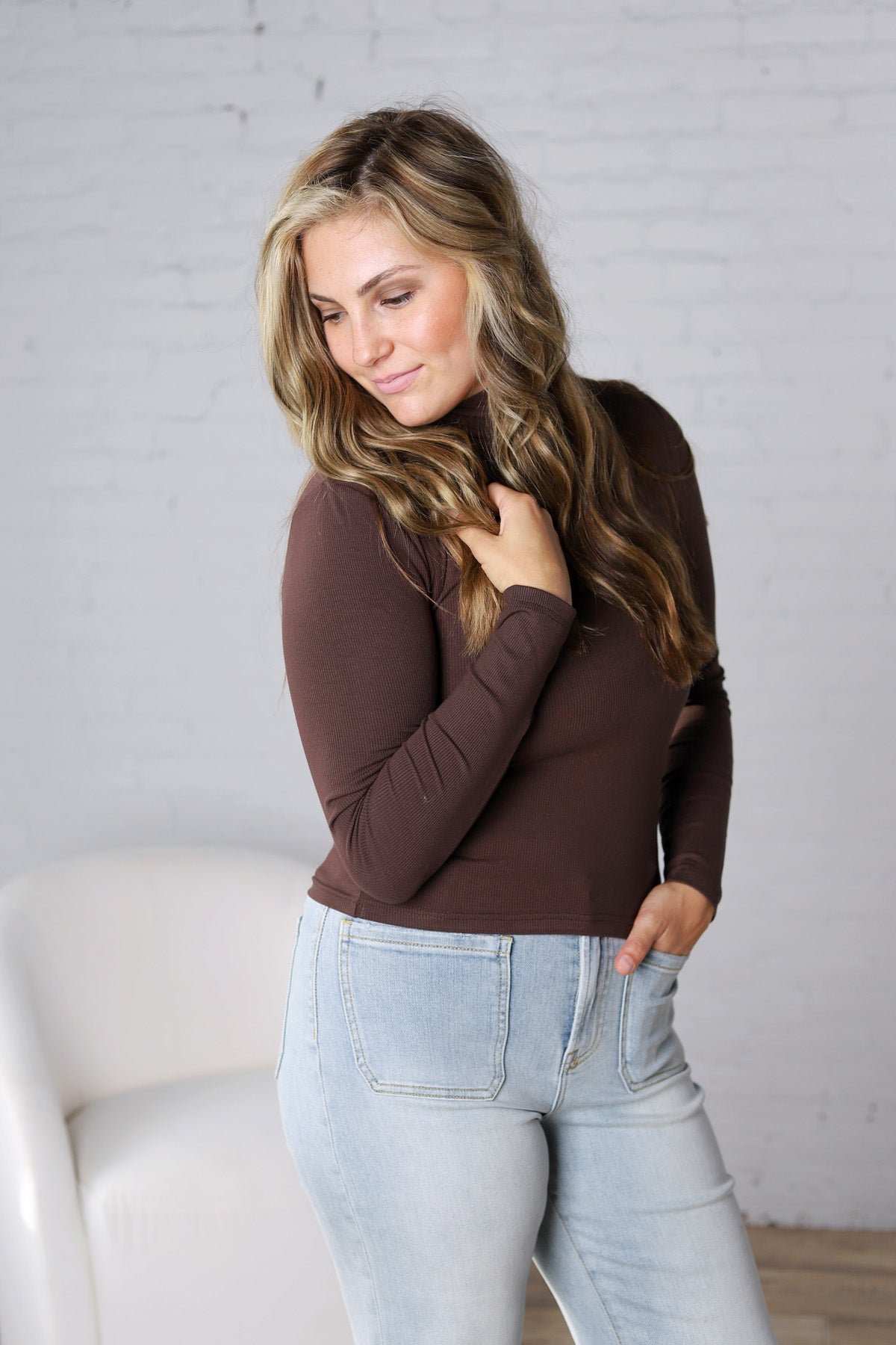 Aris Micro Ribbed Long Sleeve Turtleneck - Espresso