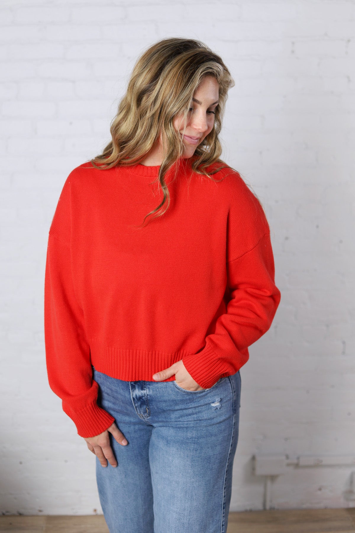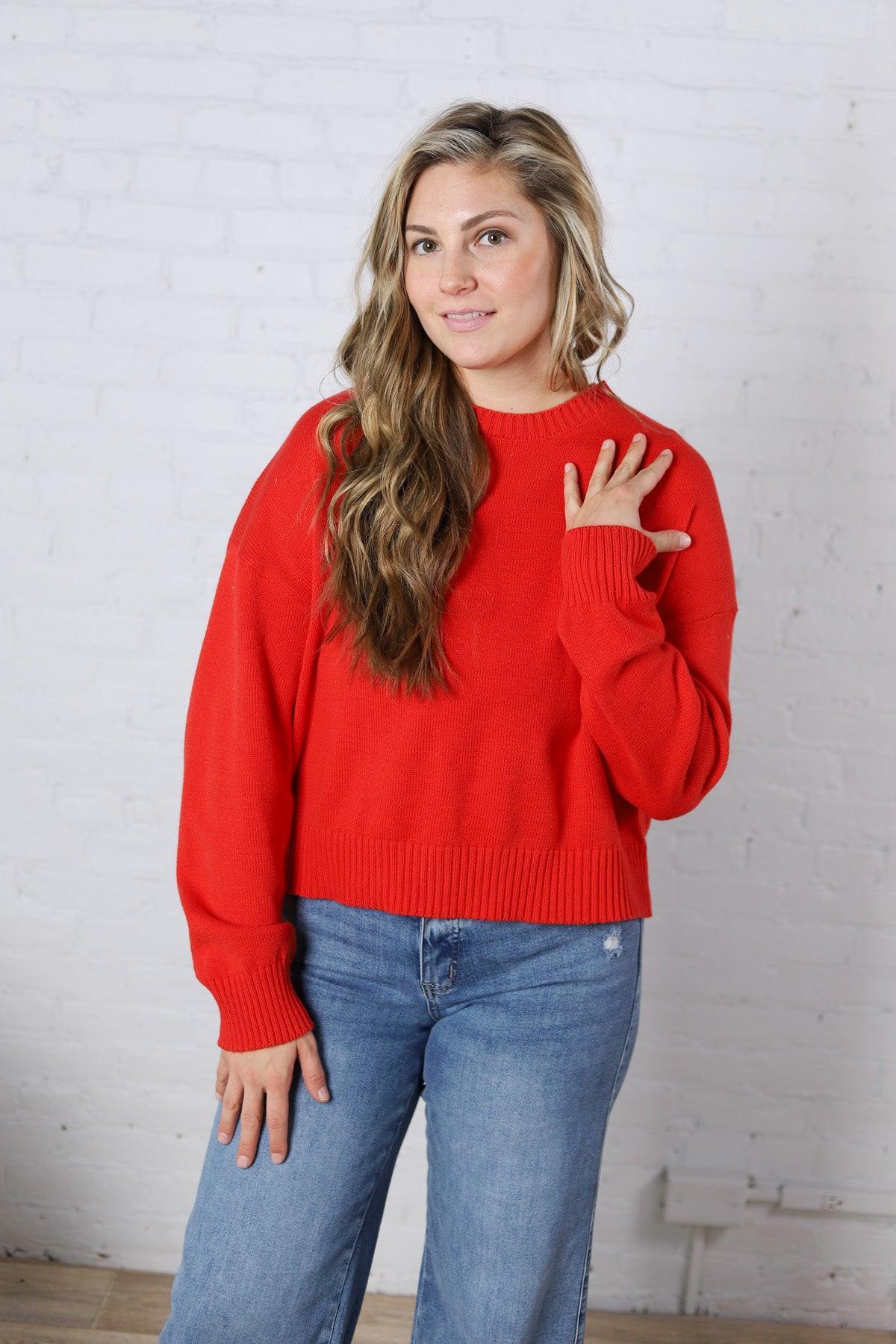 Siena Basic Relaxed Crop Sweater Top - Cherry