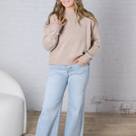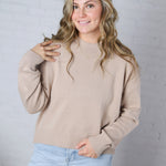 Siena Basic Relaxed Crop Sweater Top - Taupe