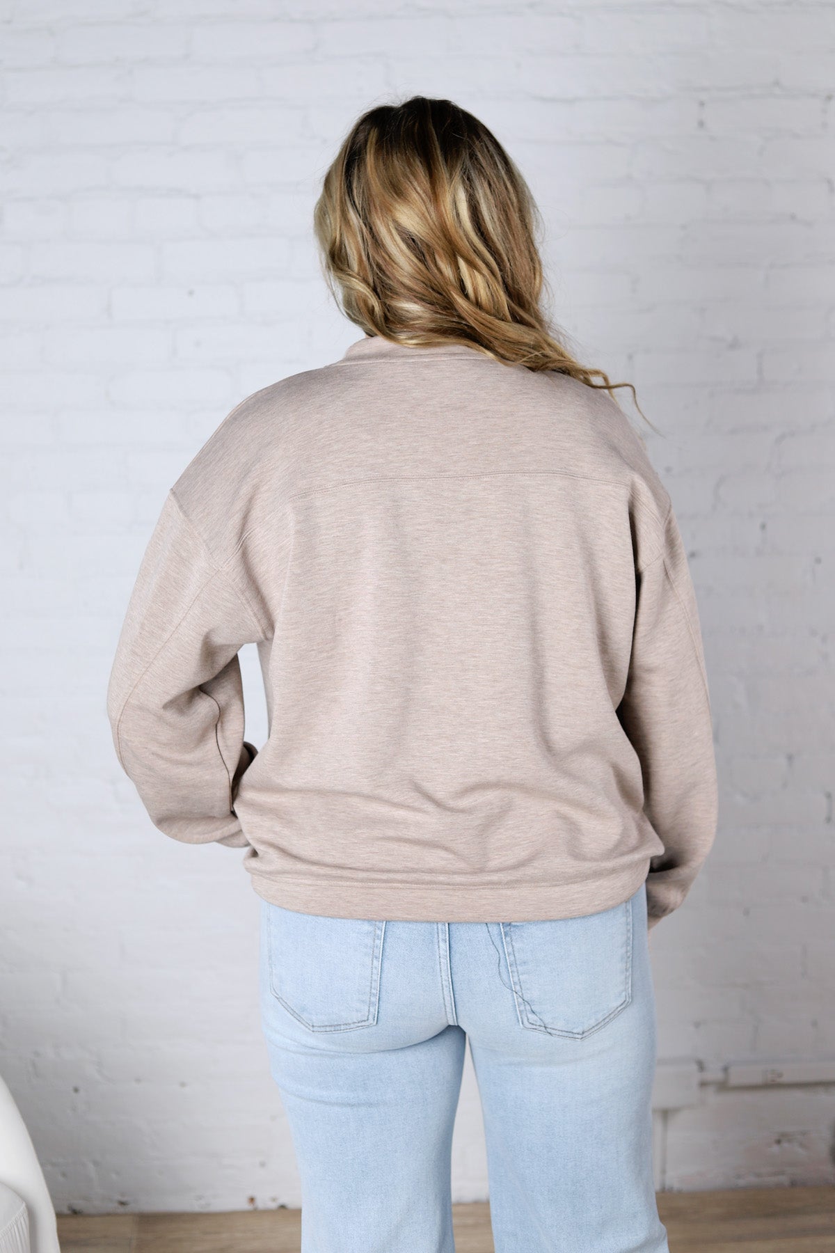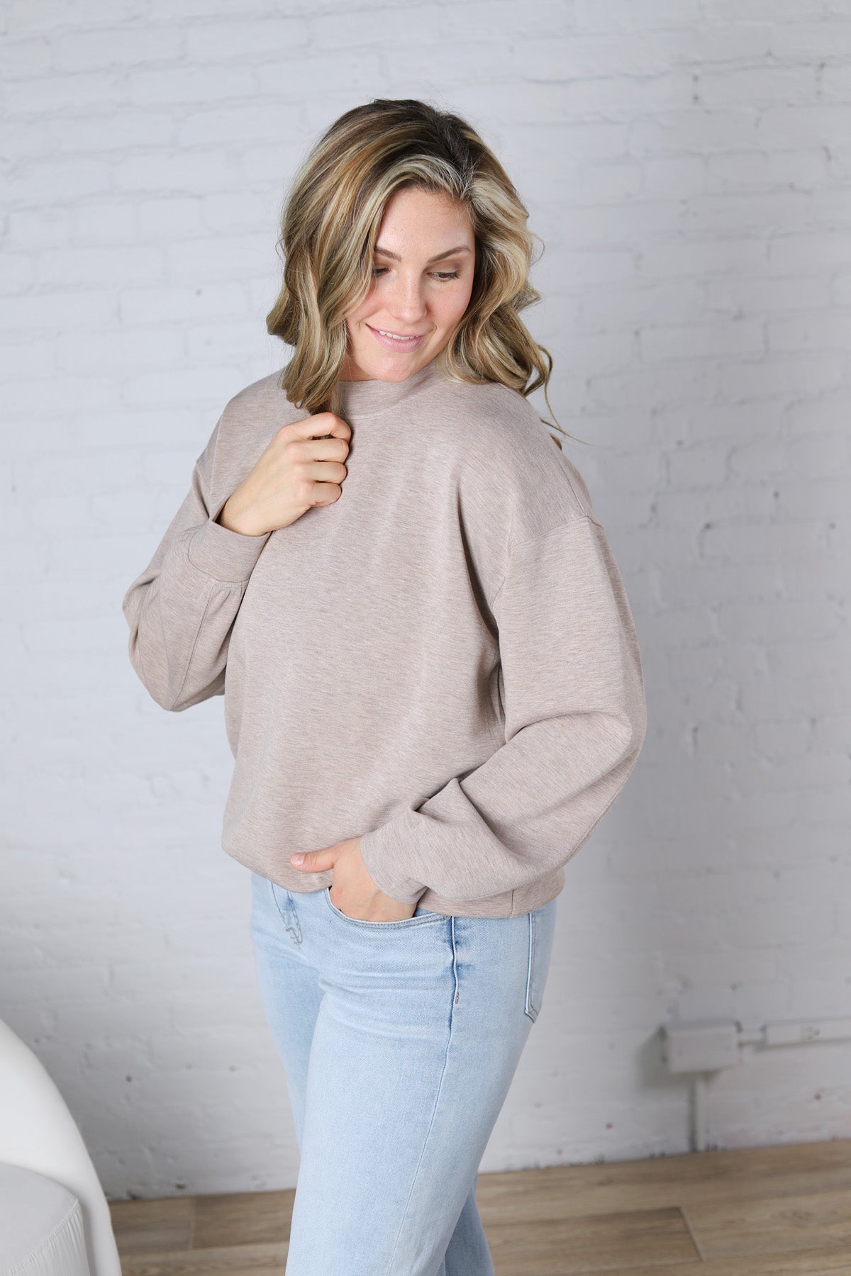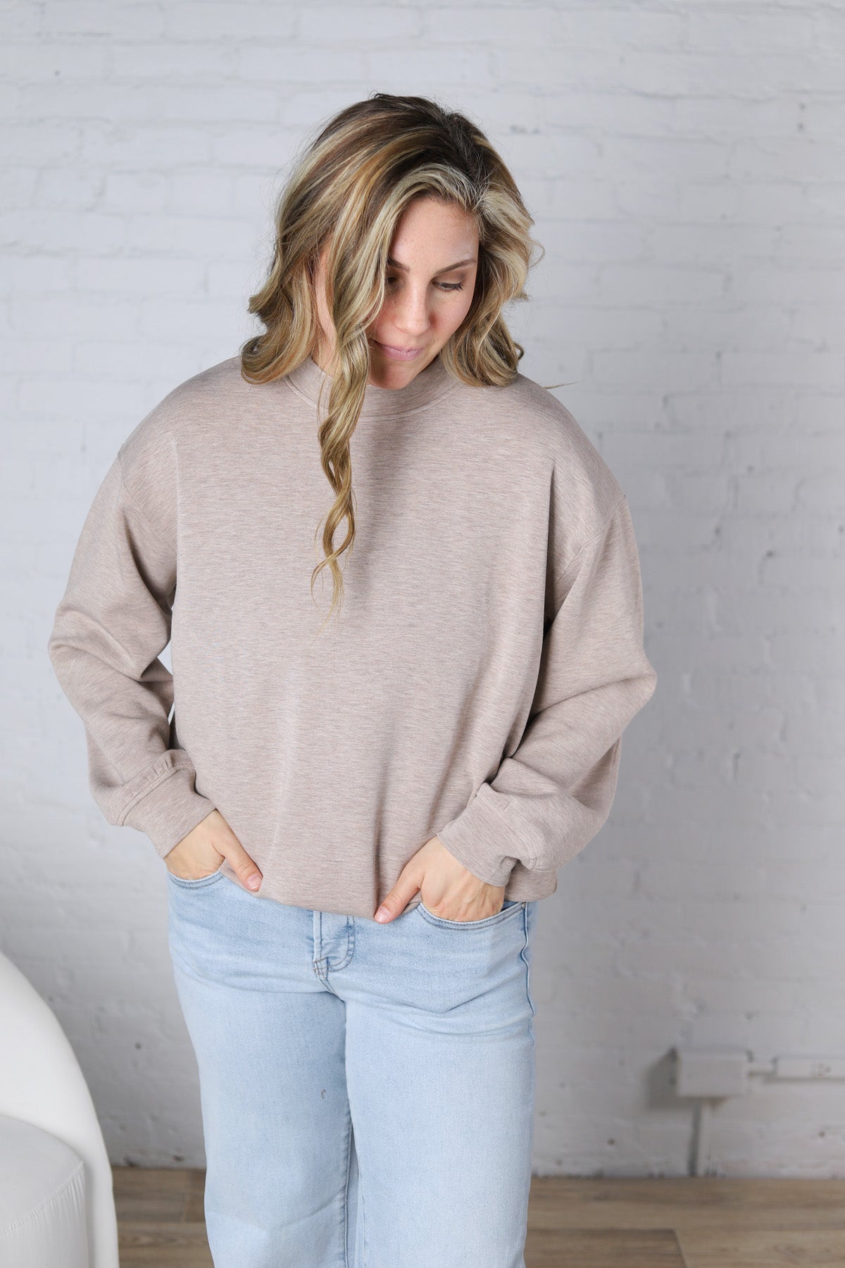 Sonja Scuba Mock Neck Pullover - Heather Taupe