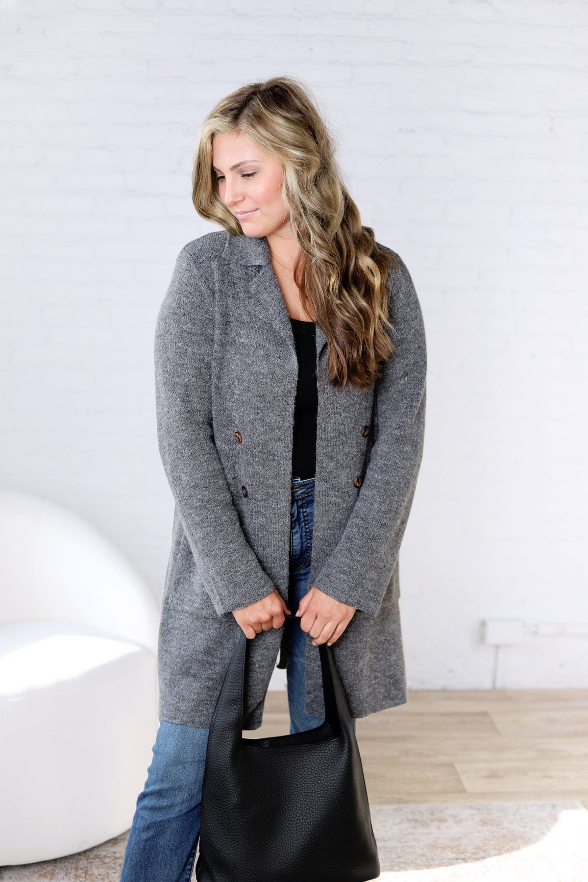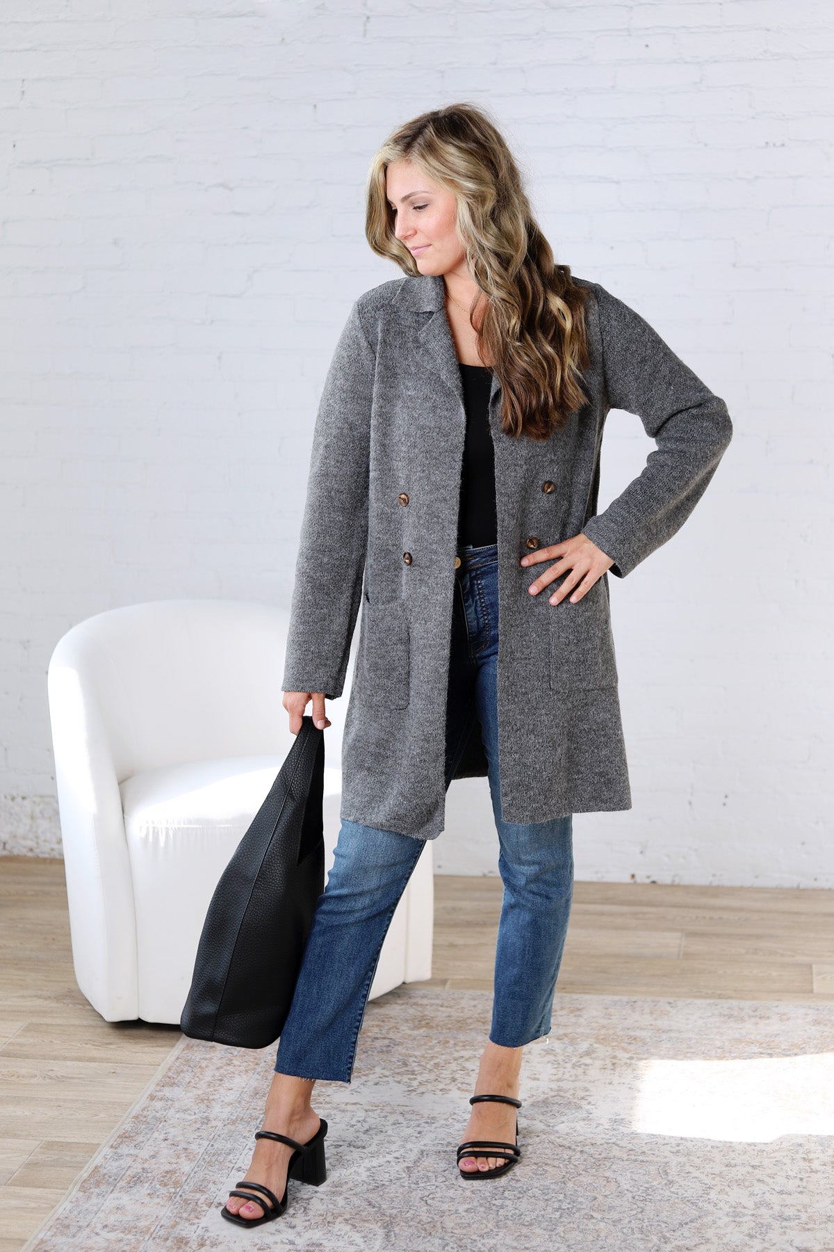 Soren Open Basic Sweater Coat - Charcoal