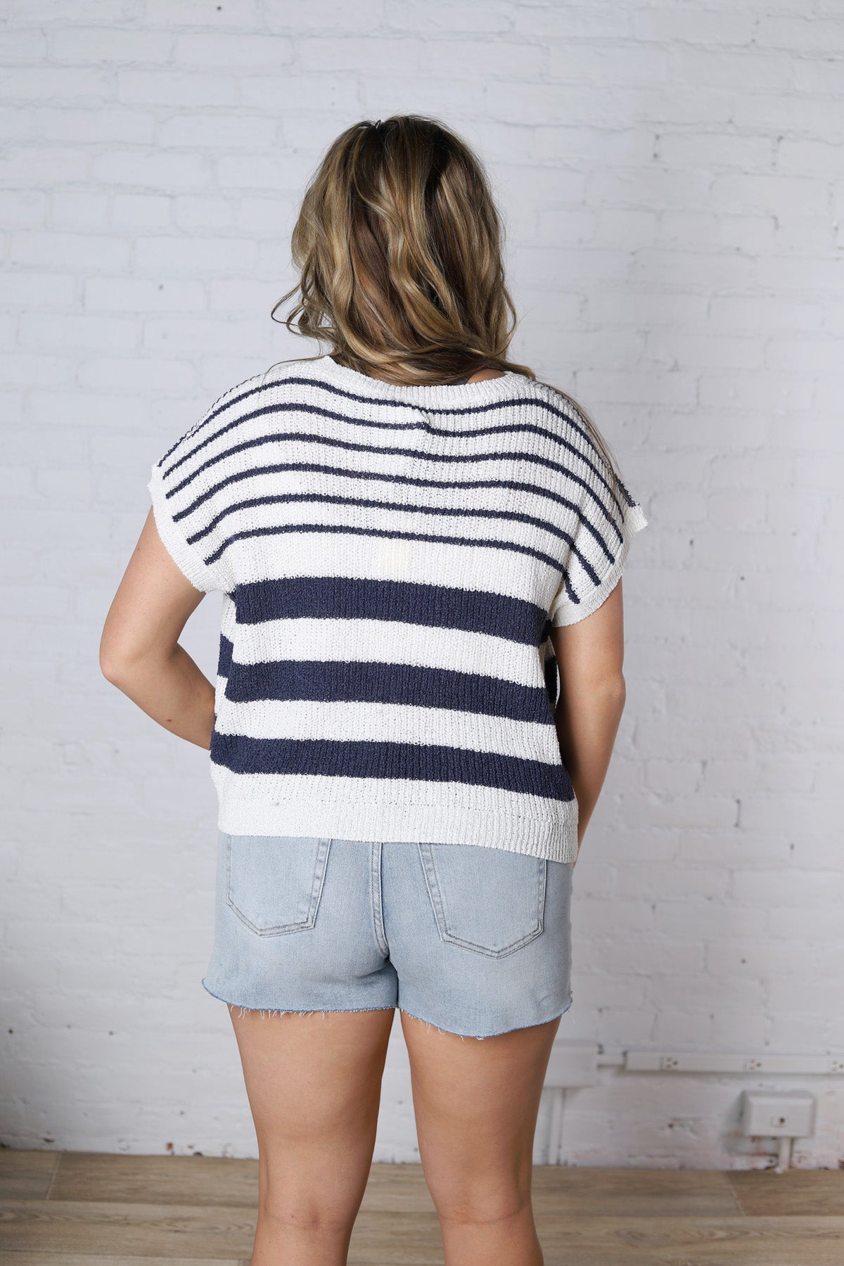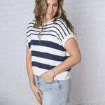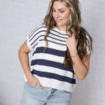 Zayra Multi Striped Sweater Top - Offwhite/Navy – Gallery 512 Boutique